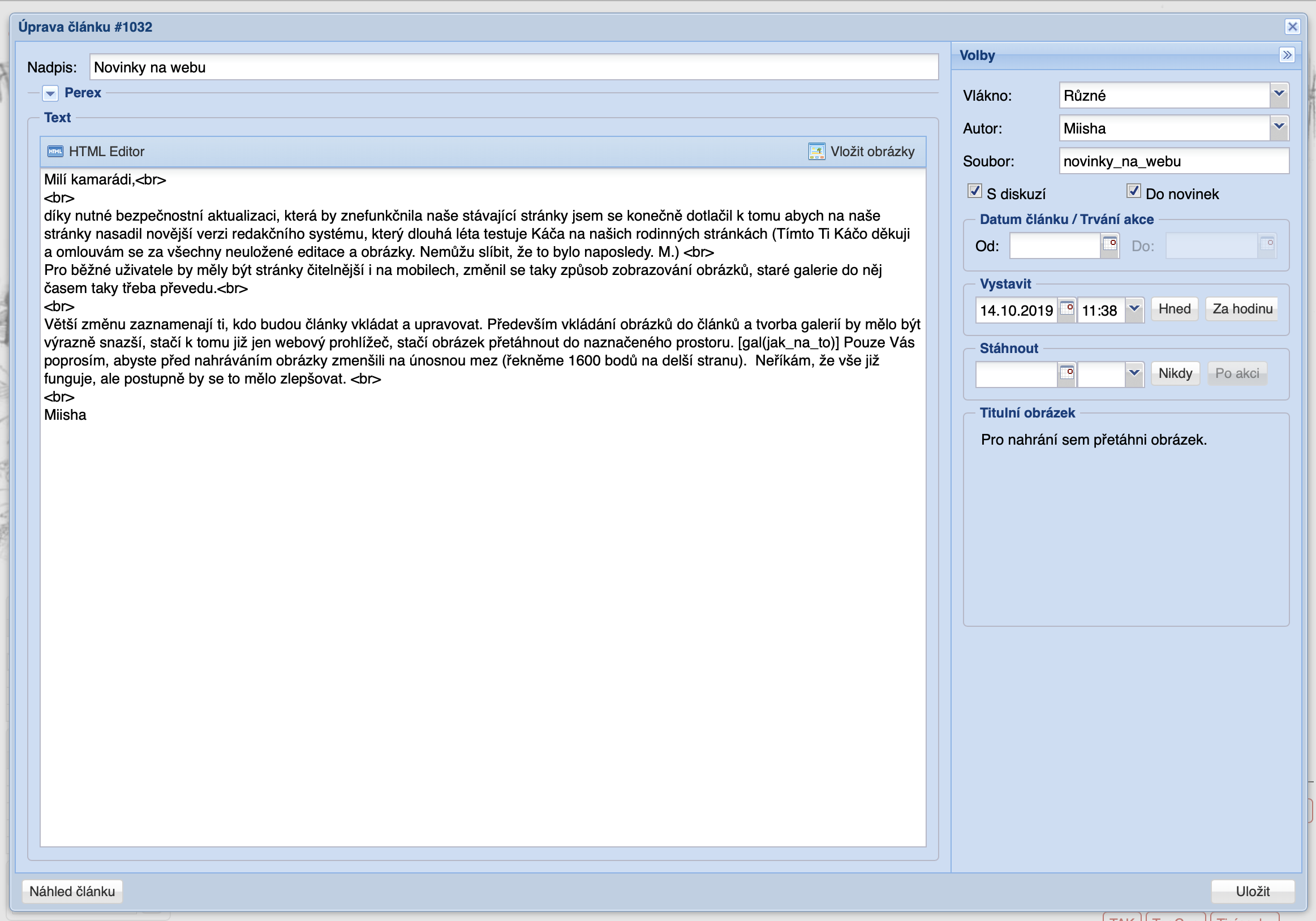 Nově tady najdete i online zpěvník složený ze všech našich zpěvníků a občas i něco navíc (zpěvníky dětské táborové, písničky z Vaňkova narozeninového zpěvníku, písničky z Vlasů a další). Najdete ho vlevo v nabídce jako „online zpěvník”. Užívejte si ho, třeba časem přibudou další písničky a další funkce. Taky když mě zaslechnete hrát něco nového, co ve zpěvnících není, zpravidla už to tady bude.