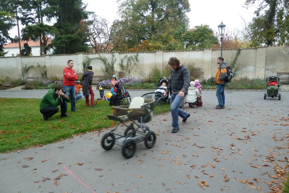 Soutěž opět přilákala i cizí diváky. Skupinka starších dam se prý dohadovala, zda v těch kočárcích jsou opravdu živé děti... Já potvrzuji, ANO všichni jeli a dojeli i s živým dítětem!
