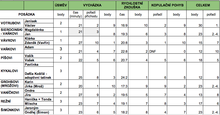 VÝSLEDKY: