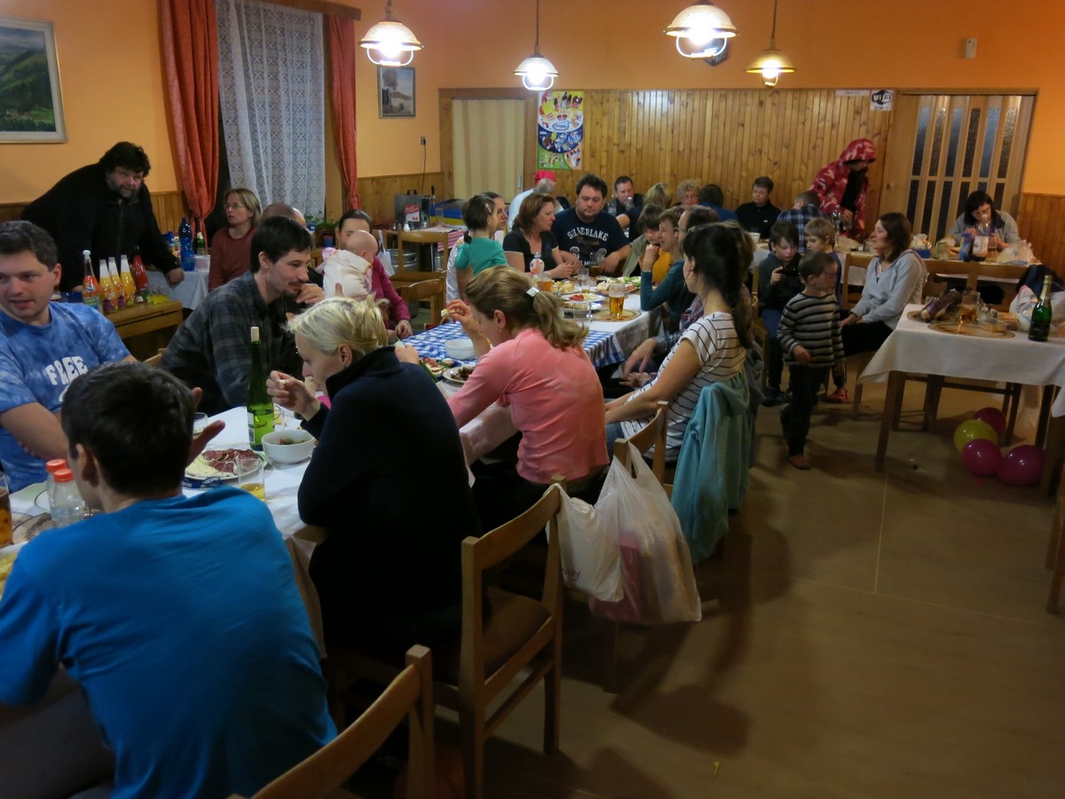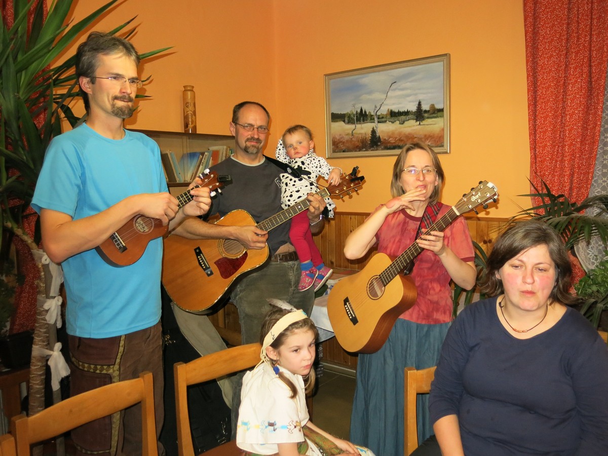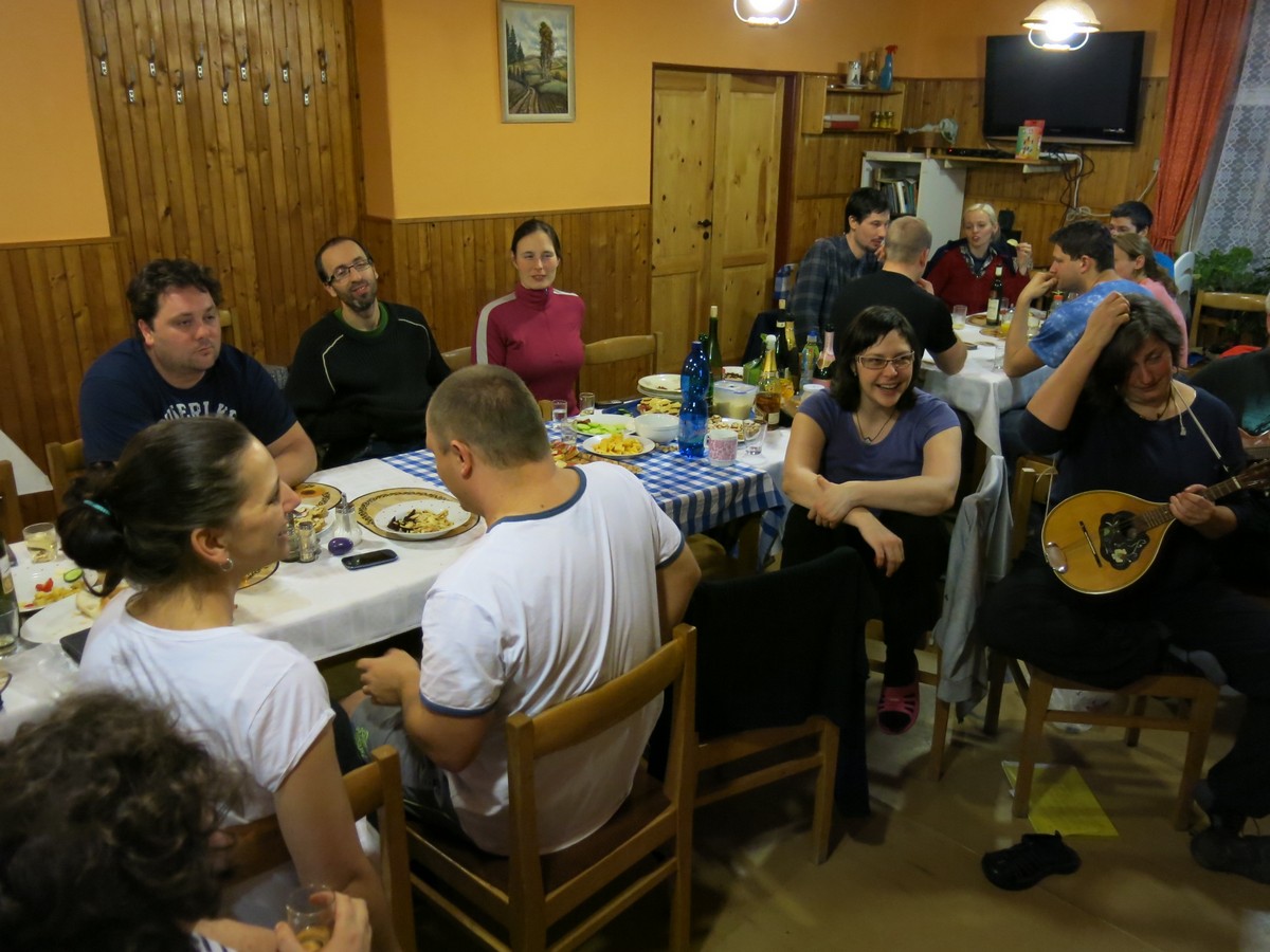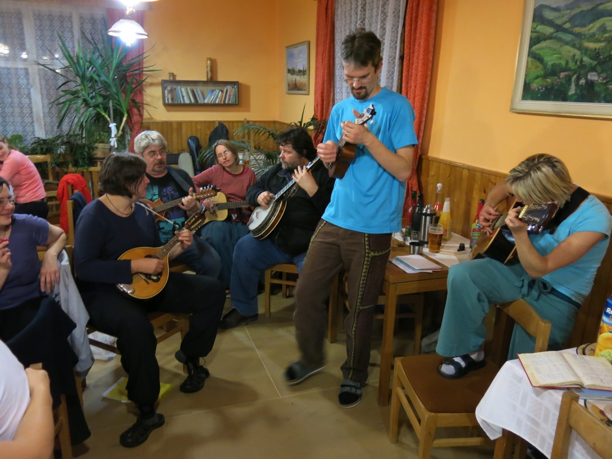 Hujerových Součků a jeho ukulele, Pavel Dočkal s banjem (zdravím Ondřeje Novotného, jestli to tu ještě občas čte ;) ) , Dežo a Verča s mandolínou (každý svou) a v neposlední řadě Kačky B. bratr Tomáš, který se po letech, co s námi na Silvestra jezdil, ukázal jako výborný kytarista a rozený showman. Zvláštní poděkování patří Milanovi Bartákovi a jeho sličné asistentce Aleně za přípravu populární vědomostní soutěže Riskuj.