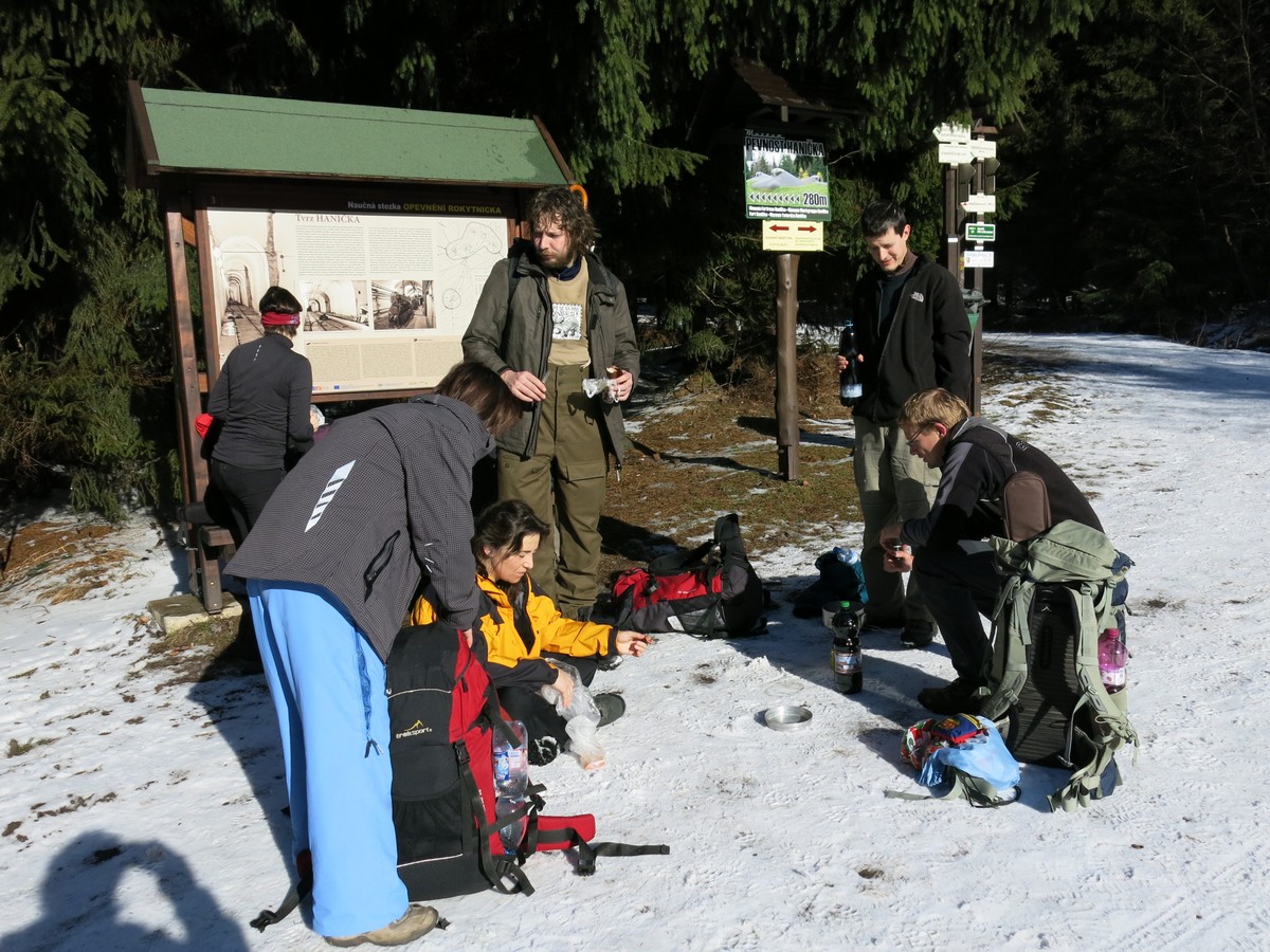 Celý týden jsem měla hrůzu, jak v pátek ráno vstanu, ale povedlo se. Udělala jsem si čaj do termosky, obula pohorky, drapla batoh a vyrazila do tmy. Lyže letos zůstaly doma, kvůli pár kilometrům na hřebeni je nepotáhnem. Opojení z náhlé volnosti se dostavilo ihned za brankou. Připadala jsem si jako hrdina. Tento pocit mě přešel poté, co jsem nastoupila do celkem plné tramvaje. Tolik lidí??? Takhle ráno??? Každý den??? Fujtajbl.