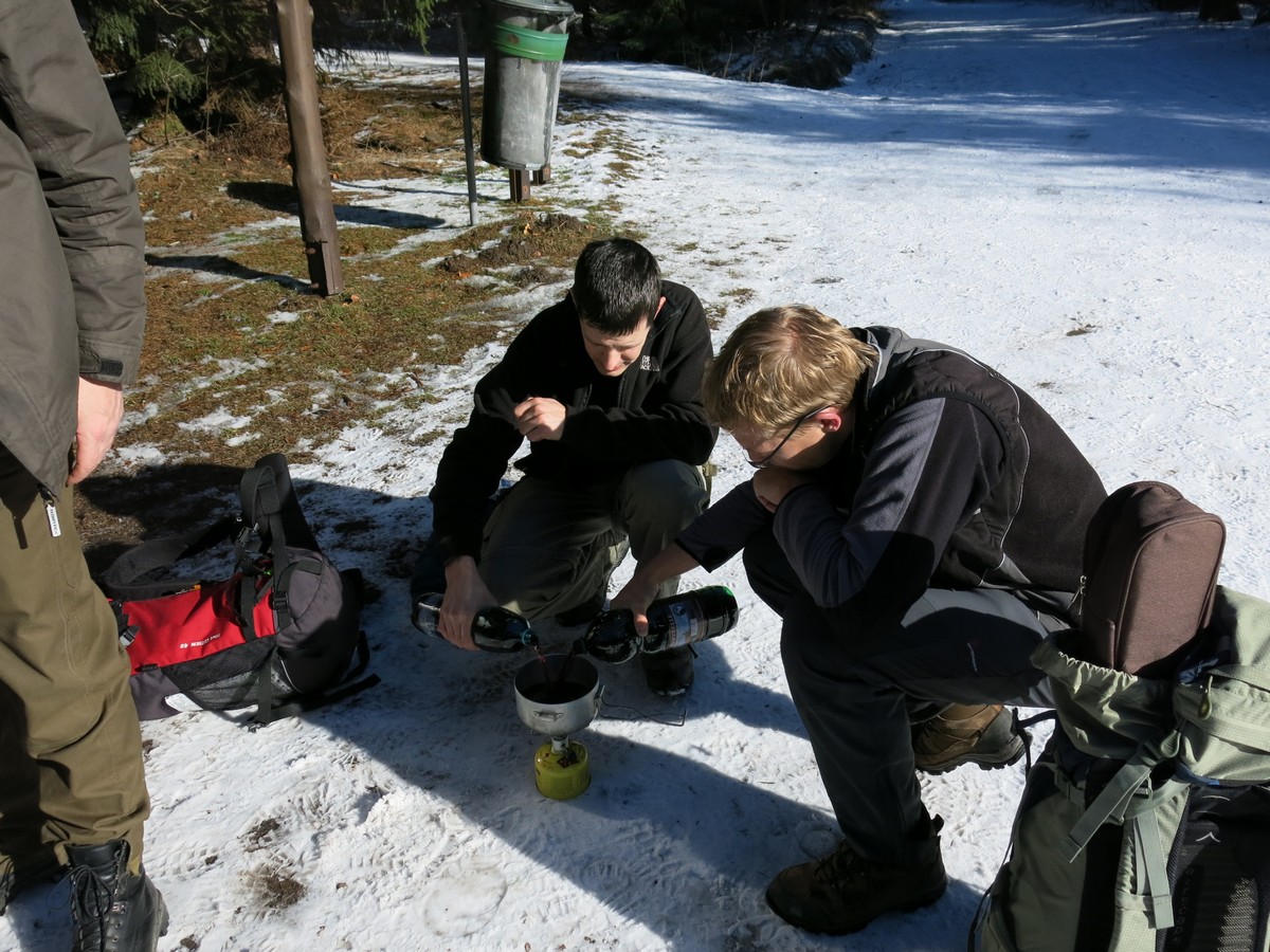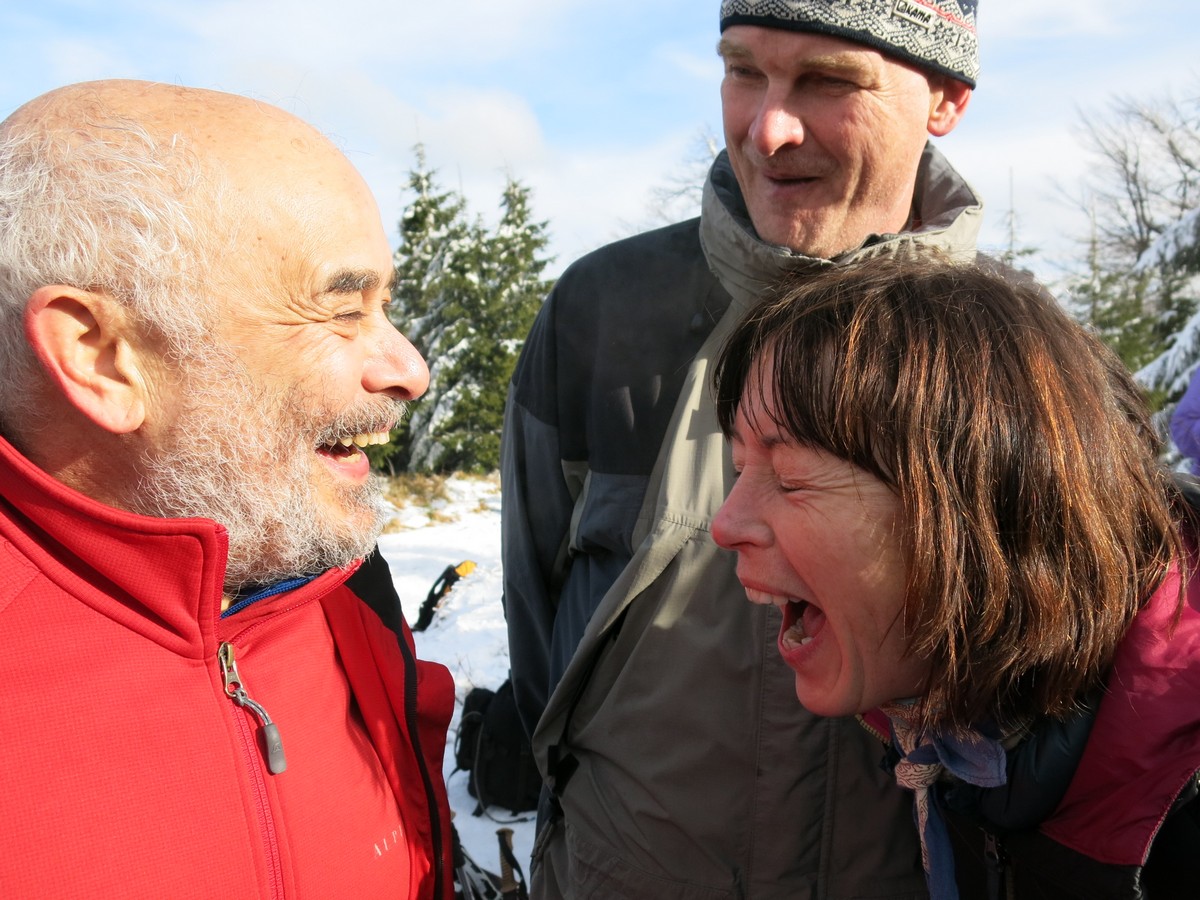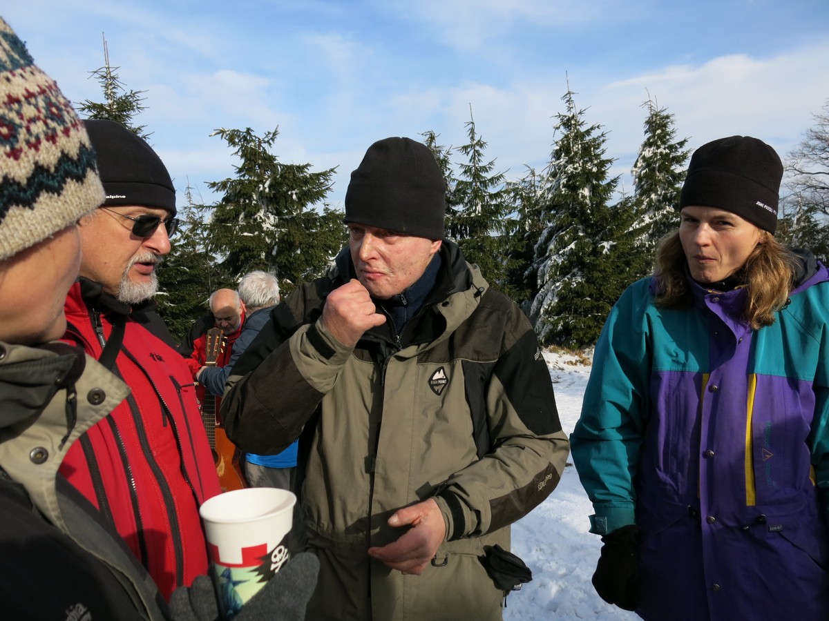 Ráno bohatá snídaně s čerstvou bábovkou a mohli jsme vyrazit do jarního slunečného dne. U pevnosti Hanička jsme provedli generálku Ustřednění a degustaci svařáku a kolem druhé jsme se na Mezivrší ustřednili s ostatními trasami. Tančilo se, zpívalo se, jedlo se, pilo. Od rána indisponovaný Profesor vyrazil stopem na nocleh a my jsme se do Orlického Záhoří spustili po svých. V hotelu nastala humorná scénka "kdo mi to spí v postýlce", aneb se nás hospodský snažil přesvědčit, že klíč od našho manželského hnízdečka si již vyzvedl pan Šimůnek. Byly jsme s Erikou zmateny, neb já žádný klíč neměla. Ukázalo se, že poté, co jméno Hlavatý nefigurovalo na seznamu a Láďovi se nepodařilo hospodského přesvědčit, že je Jiravová, prohlásil se za Šimůnka, což už hostinský akceptoval a klíč vydal. Churavějícího profesora jsme ošetřily a přestěhovaly do jeho pokoje.