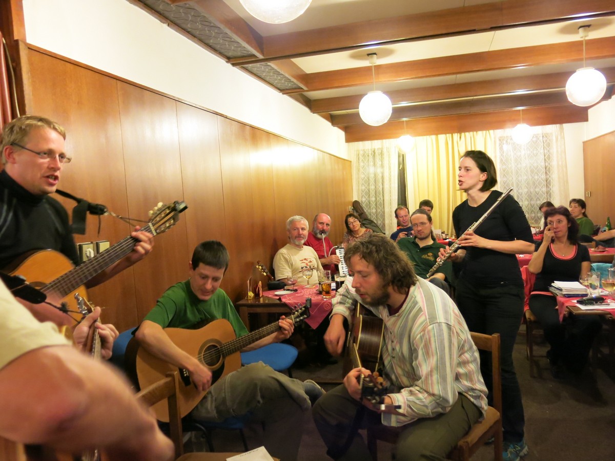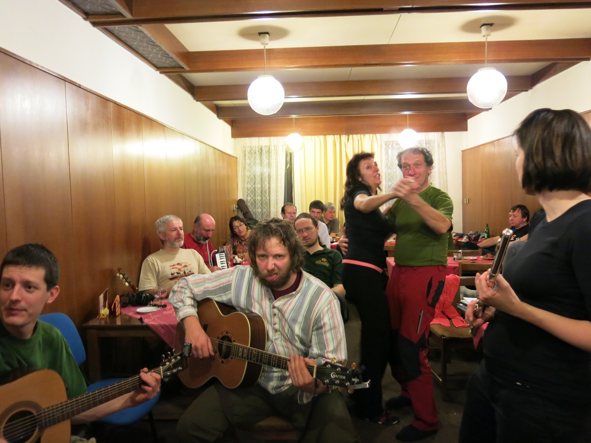 Na posledních 8 km jsme dokázali navzdory GPS navigaci zabloudit a vyslechli jsme si poutavé příběhy z africké dovolené. Na nocleh v Bartošovicích už jsme dorazili za tmy a u recepce se ani příliš nepodivovali, když jsem se nahlásila jako Šimůnek. Večírek se rozjel celkem slibně, tančilo se mnohdy až nebezpečně a kolem půlnoci jsme převzali hudební směnu my, "mladí" (miluji TAKové akce - budu "mladá", dokud budou "staří" jezdit). Hořké konce nastaly někdy kolem půl třetí, kdy jsme se s Erikou odebraly do společného lože.