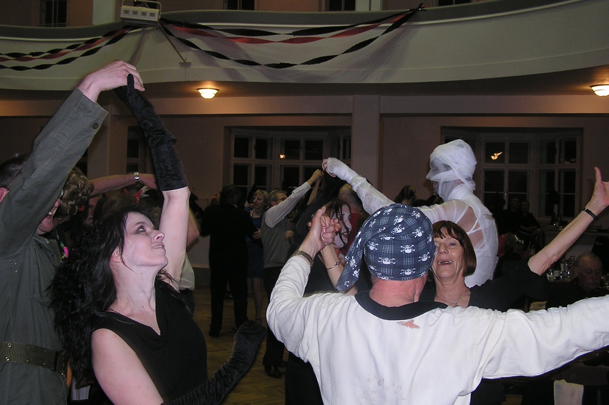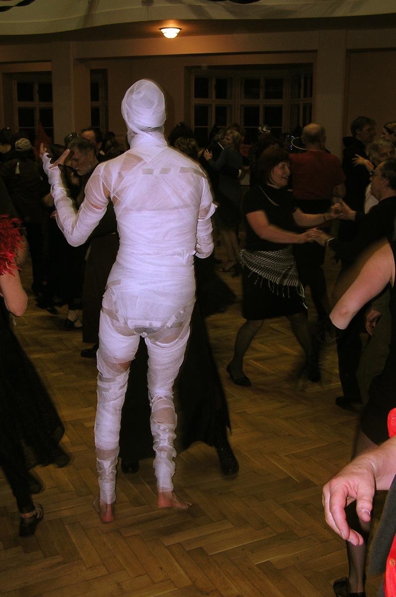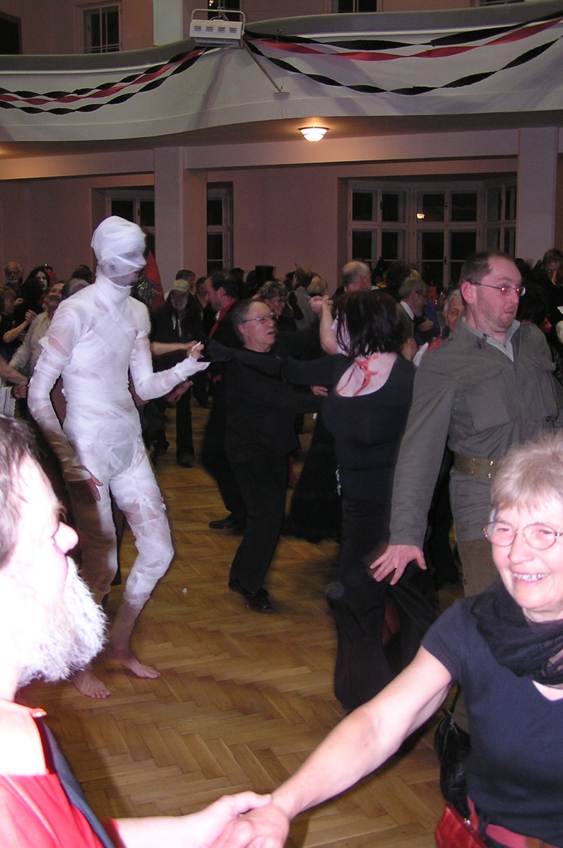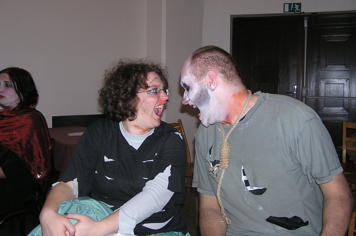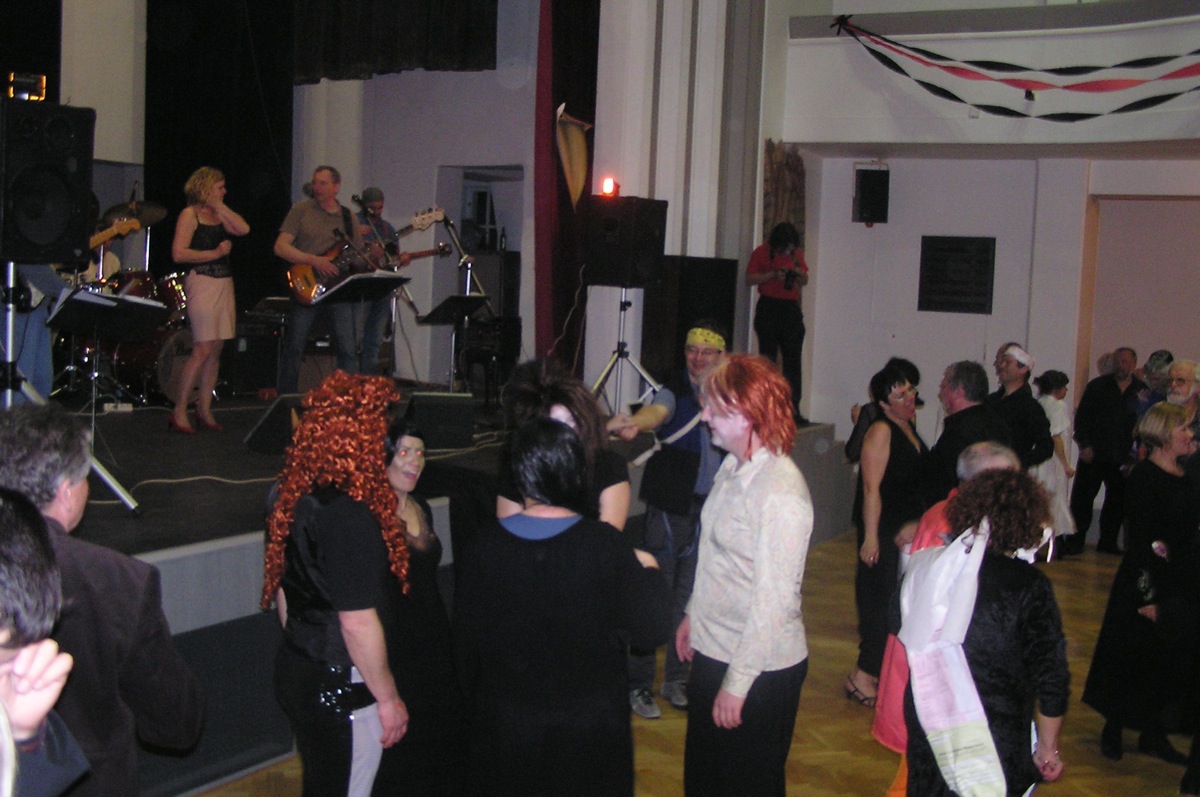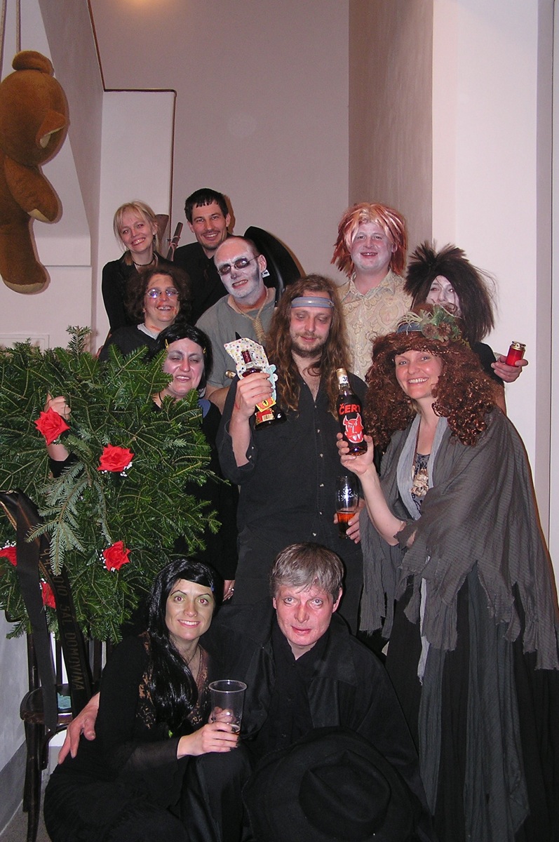 Dvacítka se bálu zúčastnila v hojném počtu 14 lidí. Plzeňská kapela SKIVO hrála nejen k tanci, ale jejich produkce byla i k poslechu - tedy příjemné překvapení. Na bále byly k vidění postavy všelijaké, kromě různých upírů, zombie, mrtvol apod., také mumie, několik knězů s dřevěným křížem, ale třeba také berňák, manželé Paroubkovi, pionýři, ruský tantkista, stěhování, muslimský atentátník. Moc pěkná byla i tombola - hrobola, z které si Dvacítka odnesla mnoho hodnotných cen, mj. sekyru (Janka s Romanem), lopatu (Káča s Míšou) a absolutním vítězem se stali Verča s Václavem, kteří vyhráli smuteční věnec. Gratulujeme.