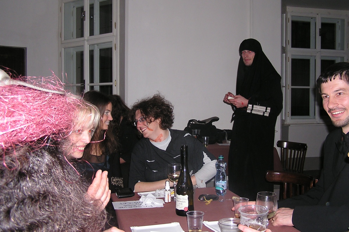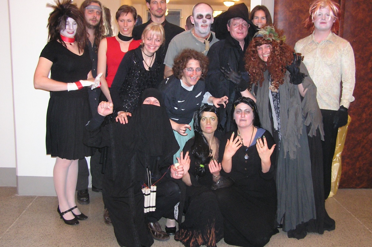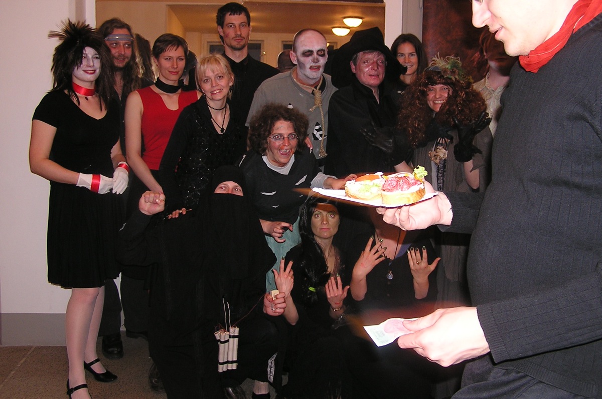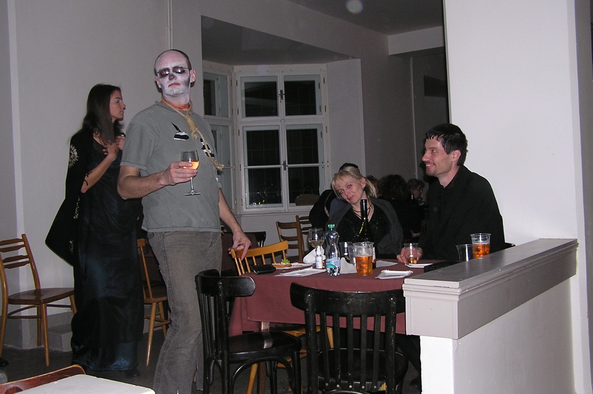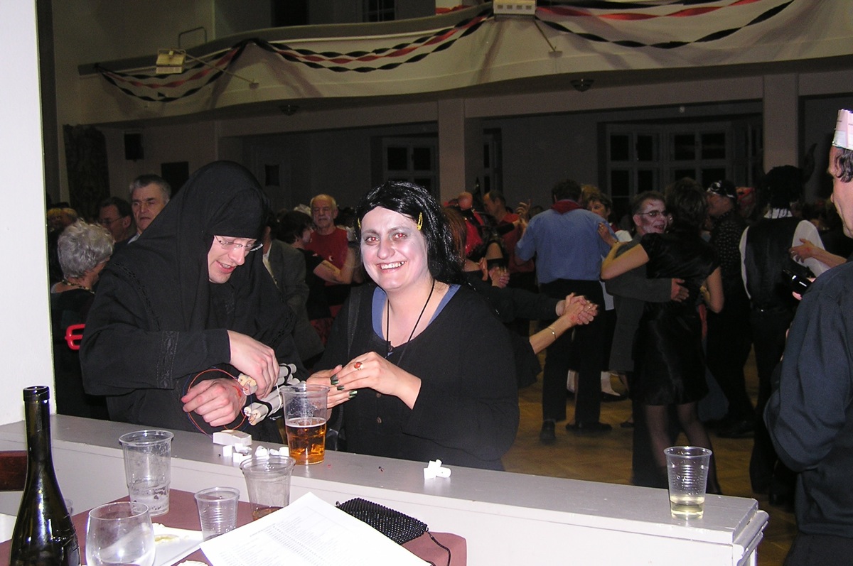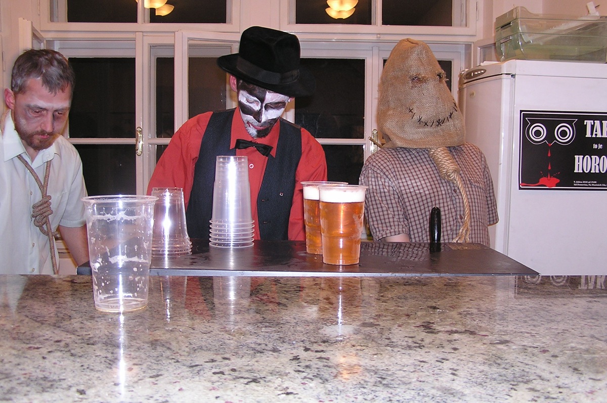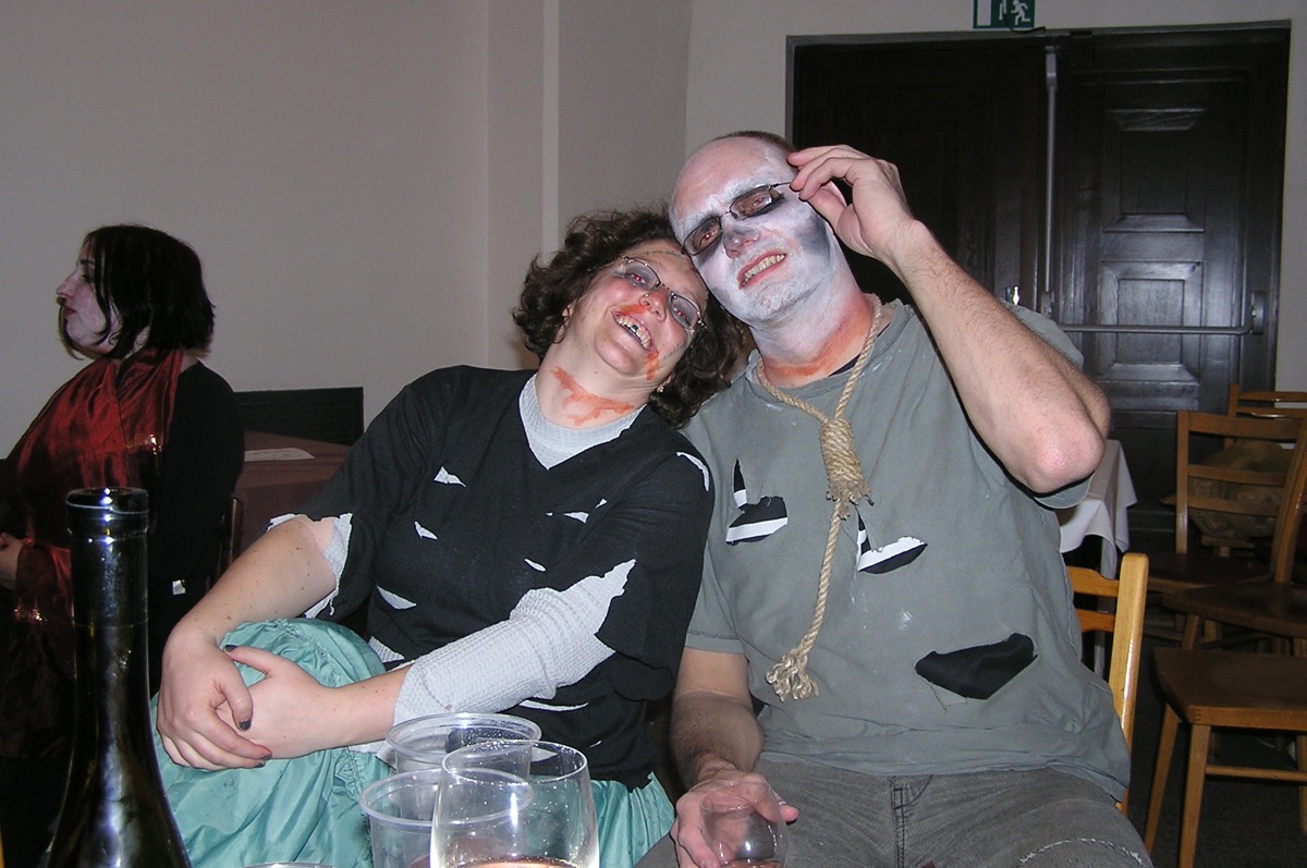 Dvacítka se bálu zúčastnila v hojném počtu 14 lidí. Plzeňská kapela SKIVO hrála nejen k tanci, ale jejich produkce byla i k poslechu - tedy příjemné překvapení. Na bále byly k vidění postavy všelijaké, kromě různých upírů, zombie, mrtvol apod., také mumie, několik knězů s dřevěným křížem, ale třeba také berňák, manželé Paroubkovi, pionýři, ruský tantkista, stěhování, muslimský atentátník. Moc pěkná byla i tombola - hrobola, z které si Dvacítka odnesla mnoho hodnotných cen, mj. sekyru (Janka s Romanem), lopatu (Káča s Míšou) a absolutním vítězem se stali Verča s Václavem, kteří vyhráli smuteční věnec. Gratulujeme.
