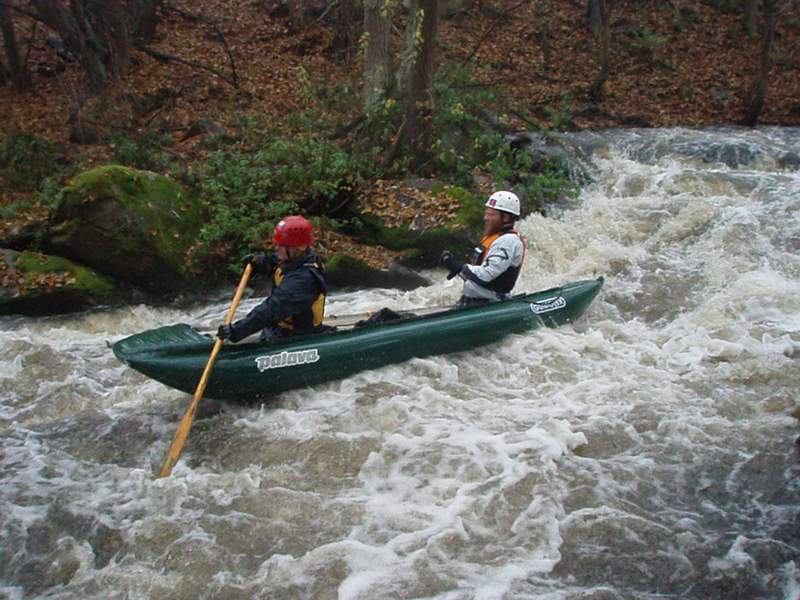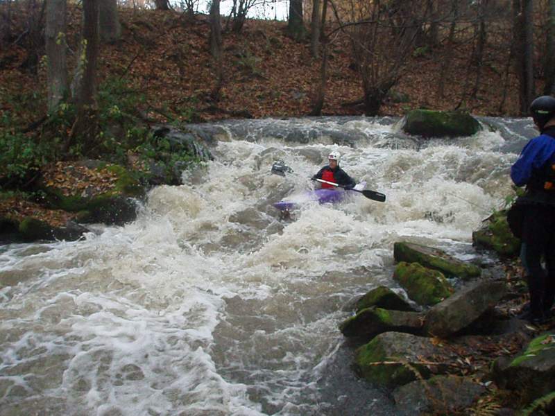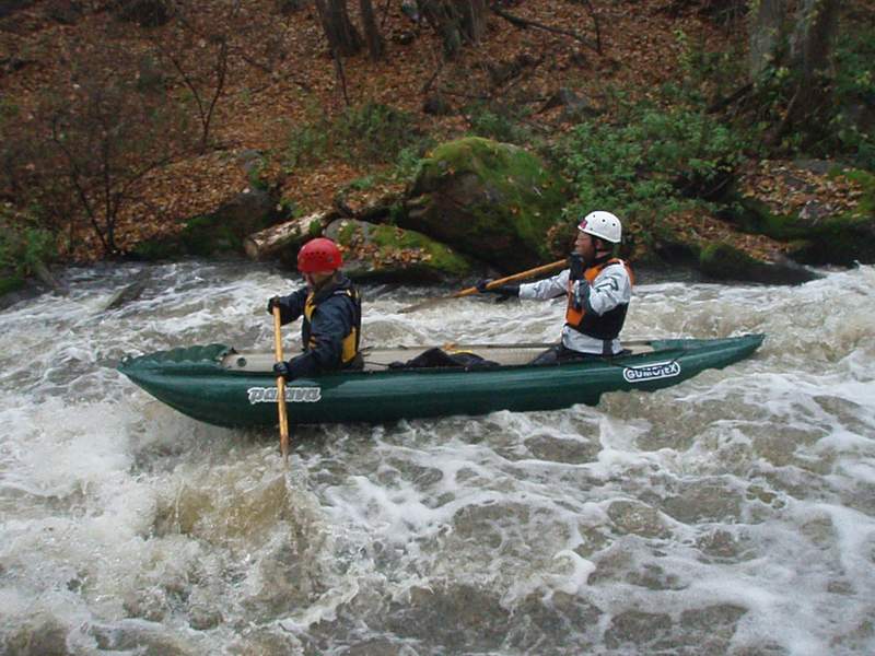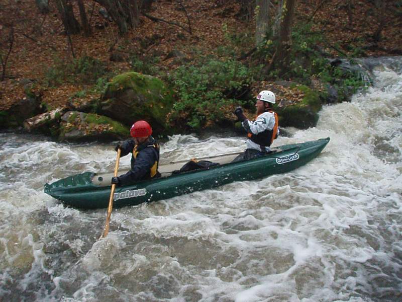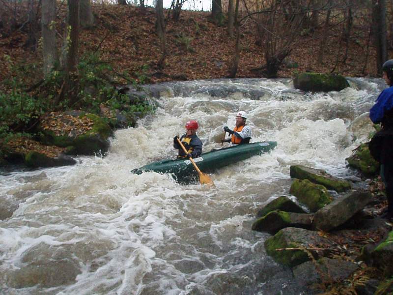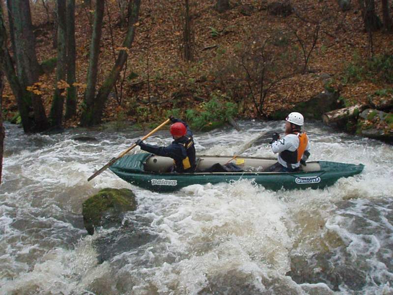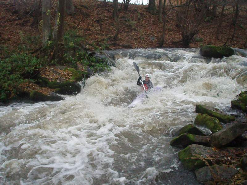 V sobotu jsme snadno našli hráz Ratmírovského rybníku, kde se začíná. A byli jsme tam dokonce ještě před tím, než v ½ 10-té začli pouštět vodu. Stihly jsme si tudíž prohlédnout první dvě kaskádky jak za stavu bez vody, tak i s potřebným průtokem. Vzhledem k tomu, že organisátoři zajistili autobusovou kyvadlovou dopravu vodáků zpět k místu startu, tak jsme neměli ani jinak obvyklé logistické problémy a mohli jsme hned vyrazit na vodu. Stihli jsme to dokonce dvakrát. Poprvé jen nejlepší úsek Malý Ratmírov – Dvoreček a podruhé i s malebným úsekem až do Jindřiše. Musím zde přiznat, že já jsem v obou případech poslední kaskádu před Dvorečkem přenesl, ale ostatní se do vln a válců kataraktu obtížnosti cca. WW3+ s nadšením vrhli a v obou případech všichni úspěšně. Inu mládí :-))) .