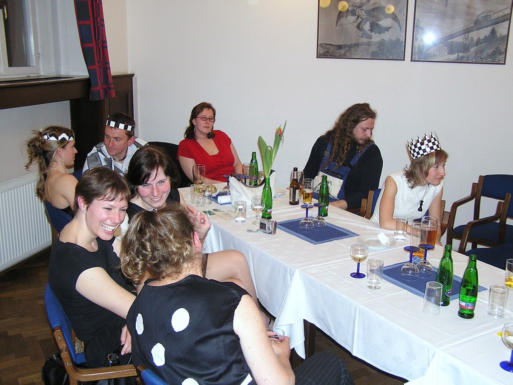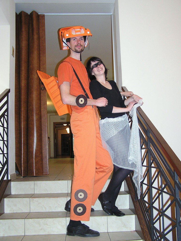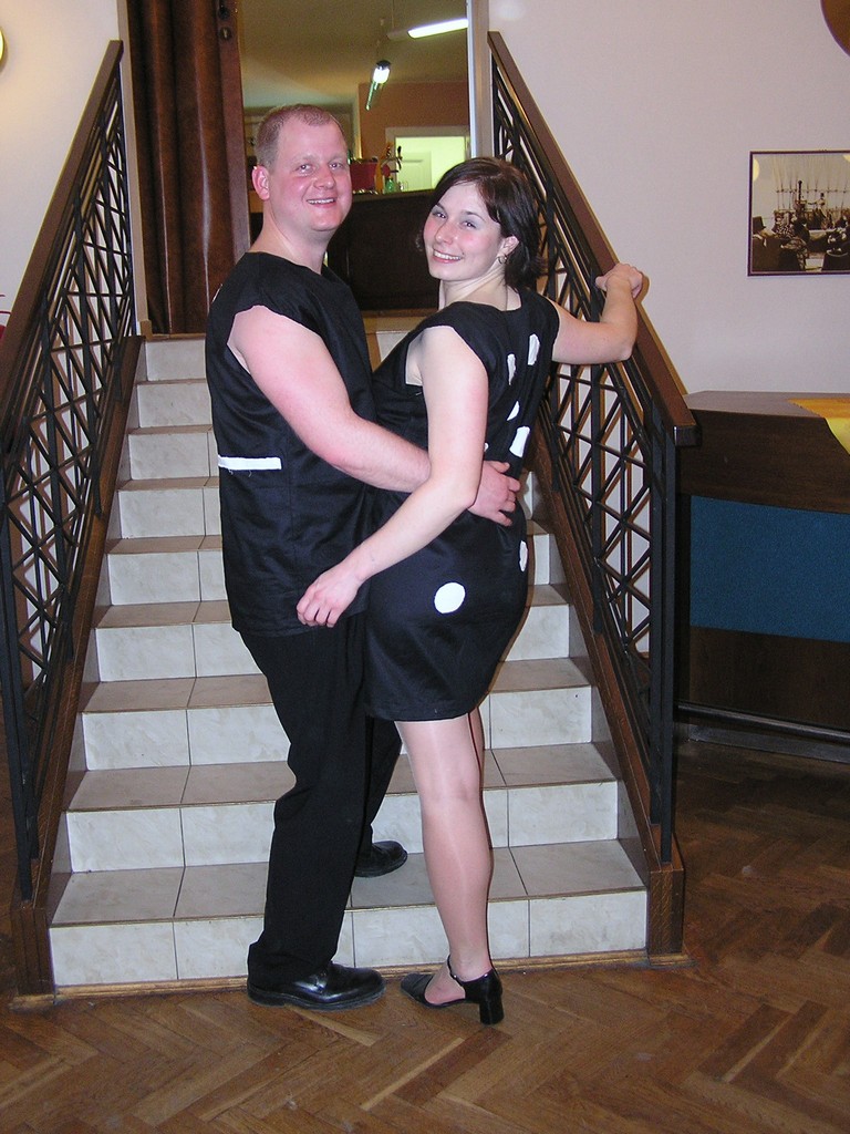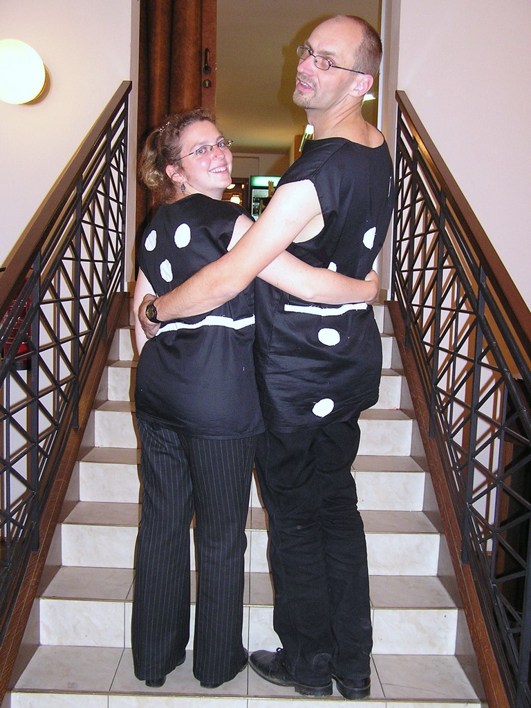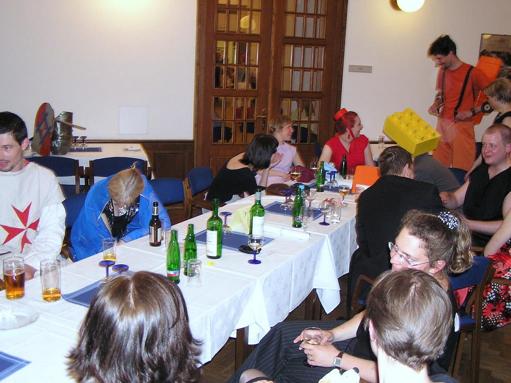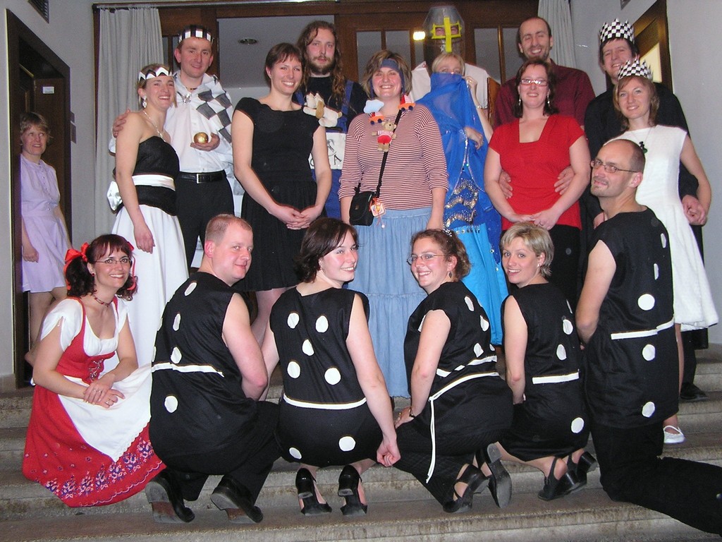 Na Bále se nás sešlo slušných dvanáct dospělých dvacítkářů (jmenovitě Monika, Kája, Janka s Romanem, Vašek s Mili, Součci, Veronika s Václavem a Jiříkem a Režní) ke kterým se přidali ještě dva Mončini kolegové z práce. Kostýmy byly rozmanité - šachové figurky, vojáčci a rytíři, panenky, plyšáci a mončičáci, několik kostek domina a lega, několik igráčků a v mých očích rozhodně zvítězivší oranžová tatrovka v podání Šimona z 26. No, kdo jste ji pánové neměl, že?