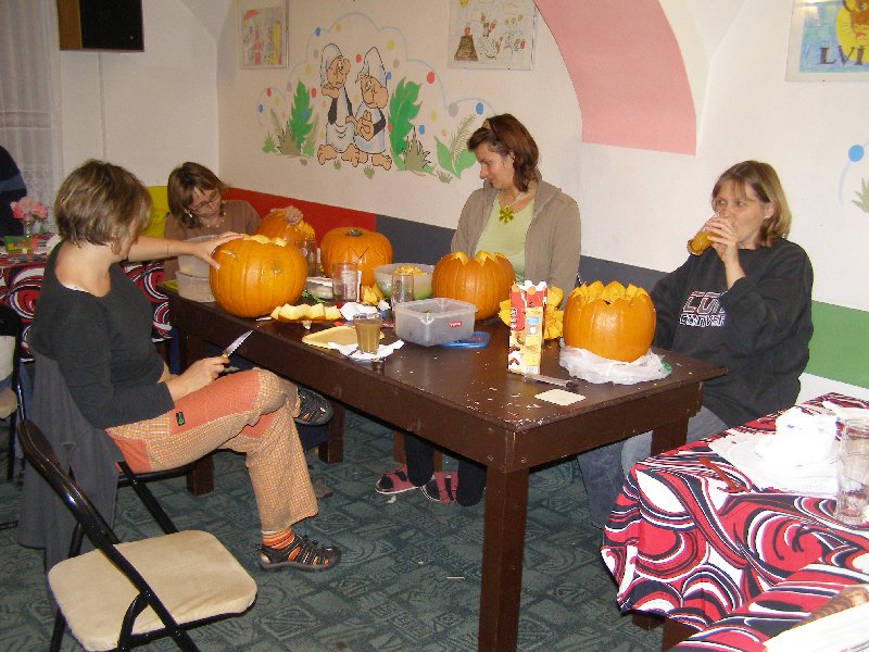 Dlouhé podzimní večery jsme si krátili dlabáním dýní, lampionovým průvodem, uspáváním dětí a hlavně hovory např. o nemocech (to hlavně pánská část), o výchově, o dětech a tak... Na oficiální zápis se můžete těšit od Ivy Konopáskové a na fotky se můžete podívat zde u článku,