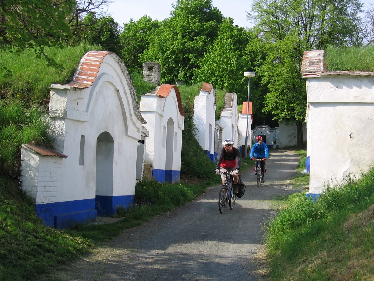 Jako první typická vesnička se sklípky nás uvítal Petrov. Nikde ani živáčka, ale sklípky byly krásně malované. Tak alespoň potěšení pro oko, když chuťové buňky nemají co.