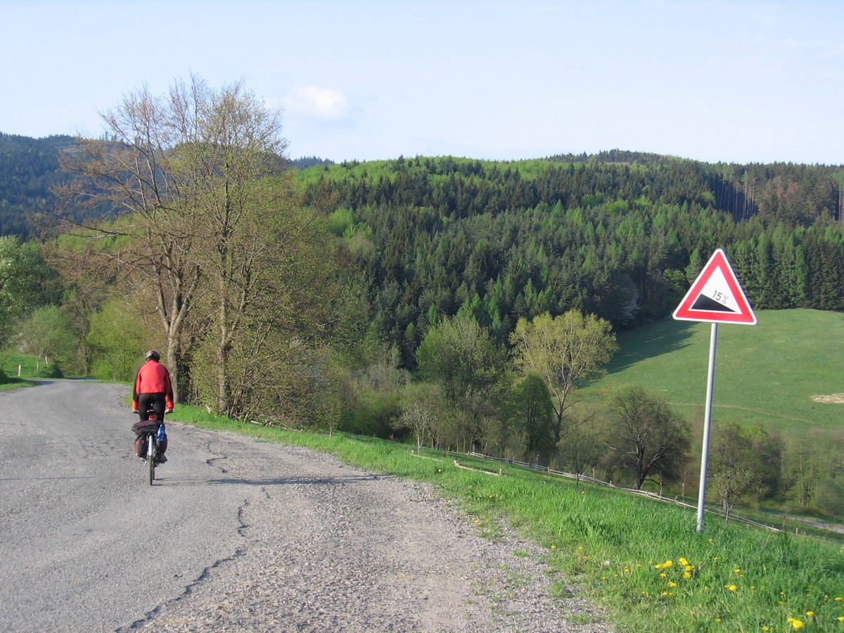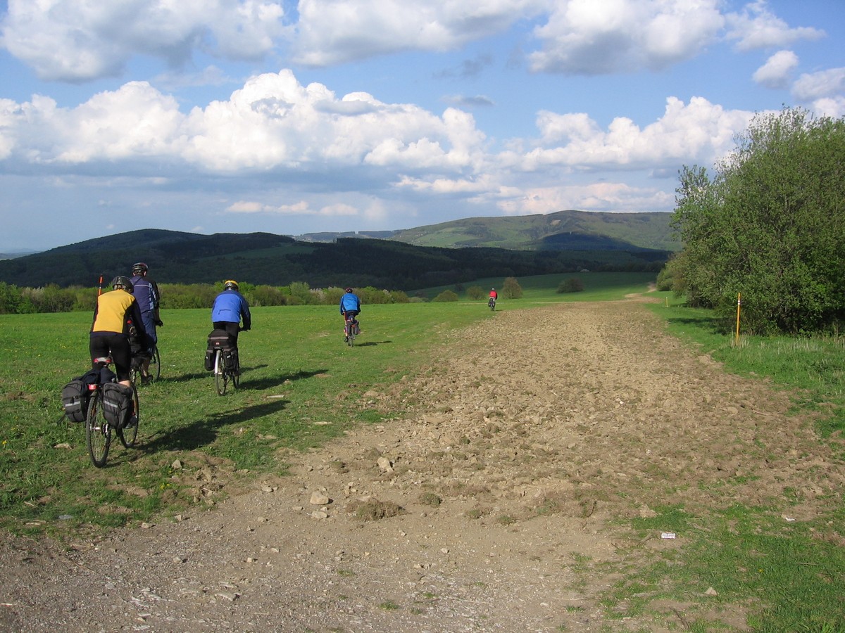 Jako ranní navnadění začínala dnešní trasa z kopce. Dojeli jsme do Starého Hrozenkova, a když jsme se podívali, kam máme jet dál, začalo nás bolet za krkem, posléze se bolest přenesla do nohou a kola se začala vzpínat na zadní. Po každém výstupu následuje zasloužený sestup, takže jsme se svezli do Pitína, a že se najíme. Najít ale v tomto kraji hospodu, která vaří, to je opravdu náročné. Smířili jsme se tedy s nakládaným hermelínem a čokoládou (Studentská pečeť s brusinkami - vynikající záležitost).