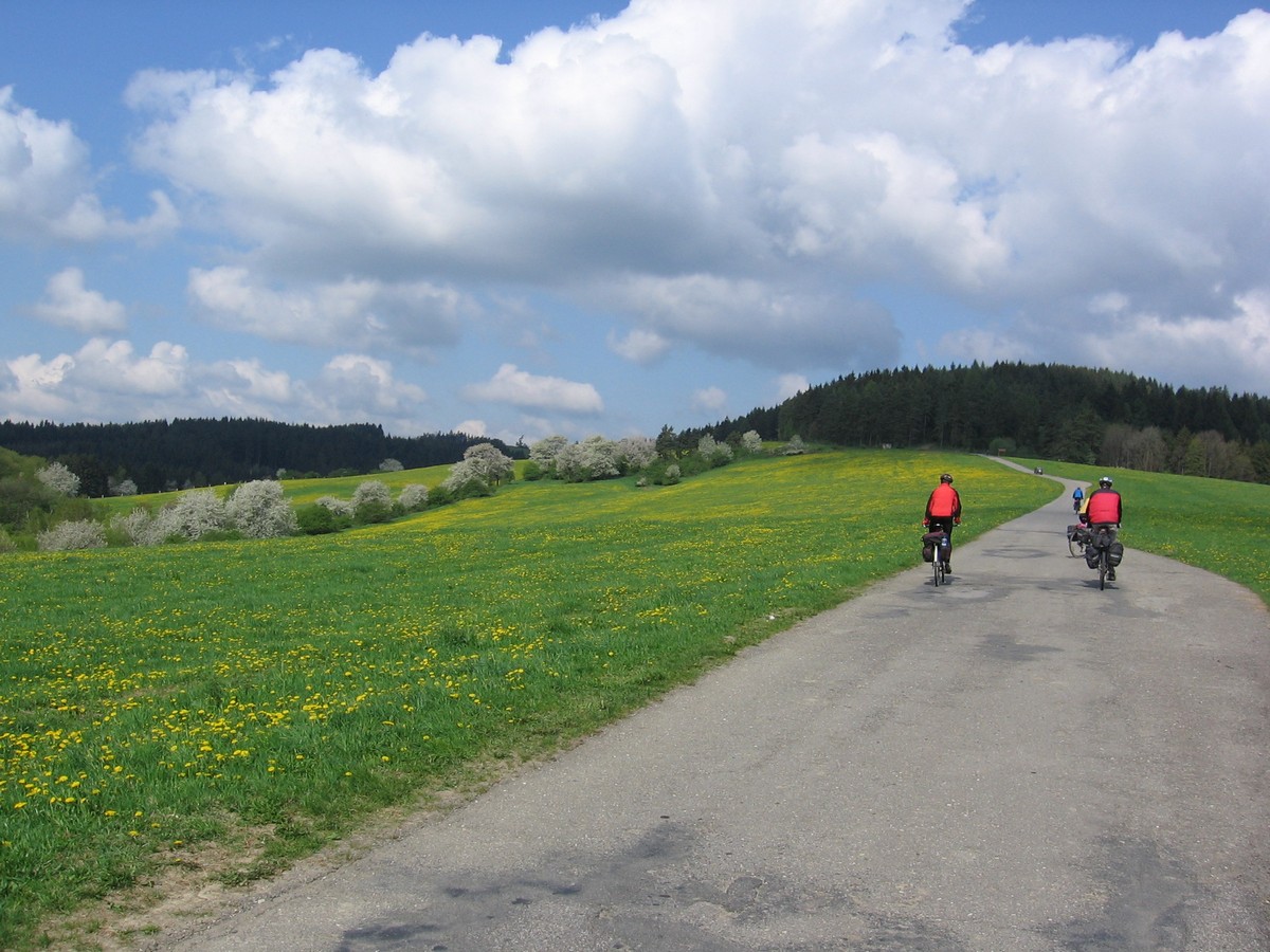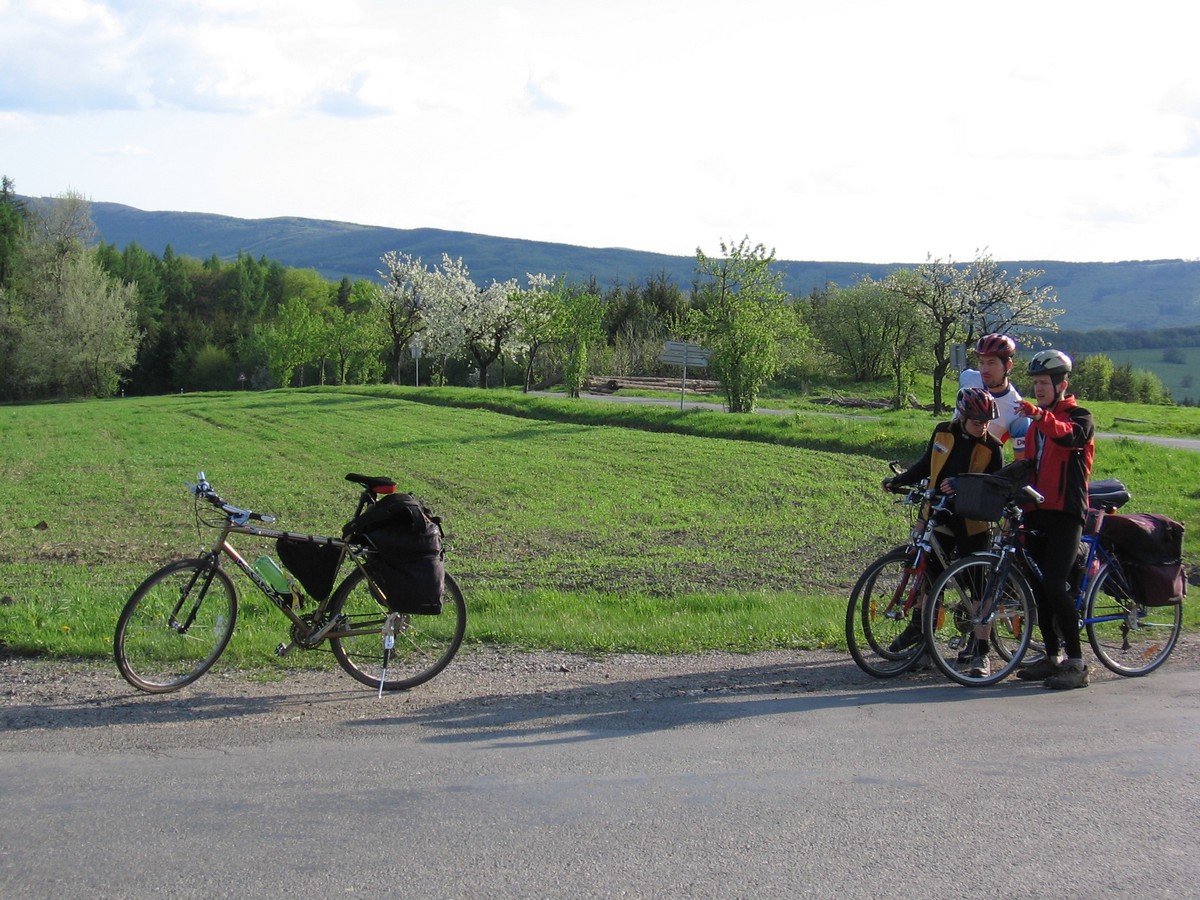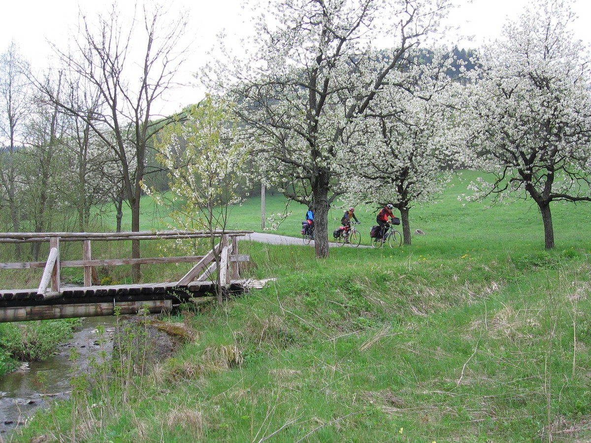 První kilometry nás vedly nížinnou oblastí do výběžku České republiky, kde se slévá řeka Dyje s řekou Moravou. Vzhledem k časnému jaru nás tam ani nepřepadla hejna komárů, která jsou pro tuto oblast příznačná. Zato nás přepadli v lužních lesích zpívající důchodci-cykloturisti.