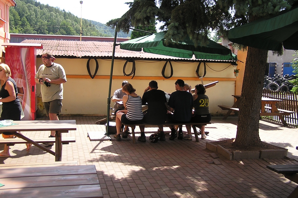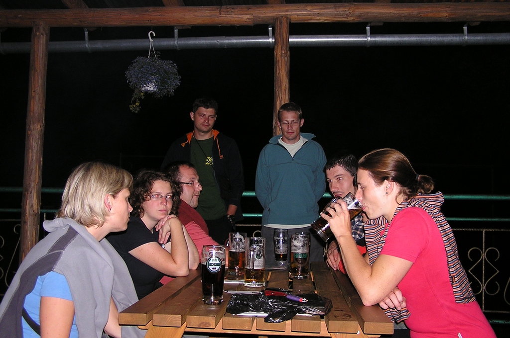 Na hlavním nádraží se scházíme 24.7. 2009 nakonec doopravdy všichni a někteří i v organizátorem určenou hodinu. Poté co po určené hodině doráží i Monika M. s Petrem se nacházíme v kompletní sestavě: Milan Barták, Vašík Řezák, Tomáš Souček, Kačenka a Michal Režní, Janka Provázková a já. Cesta vlakem ubíhala zcela pohodově a při lehce zrychleném tempu jsme stihli i přestup, takže jsme se opravdu ve stanovenou hodinu jízdním řádem ČD ocitli na nádraží v Lichkově. Místní ubytovna sice již pamatuje nějaký ten pátek, nicméně zcela dostačovala svou kapacitou našim potřebám, a jelikož naše kola dostala ubytování v „Mysliveckém salónku“, byly naše potřeby skoro uspokojeny. A o ty ostatní se měla postarat hospoda v přízemí. S radostí zjišťujeme, že se na terase griluje, a měli tu i volný stůl. Grilované rybí či vepřové nás zasycuje, i pivo tu nosí, ikdyž nějaké pochybné značky. V dobrém rozpoložení tak kolem dvanácté uléháme.