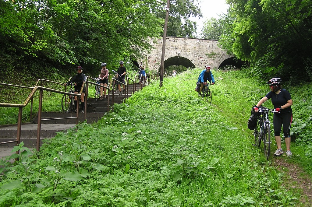 Ráno vstáváme spolu s našimi ukrajinskými spolunocležníky. Sluníčko svítí, i když je trochu chladno. Po snídani u Penny vyjíždíme a nasazujeme slušné tempo , krásně nám to jede. Rovina asfalt svištíme. Stavíme a zjišťujeme, že Milanovi začíná trošku prolézat duše pláštěm. Na krásné zahrádce si tudíž dáváme limo, pivo a Milan prohazuje přední plášť za zadní a naopak. Pokračujeme v cestě , která se tedy zvedá tak brutálně, že všichni nakonec z kola spadnou, ale jinak je naprostá pohoda. Na vrcholu Milan rozdělává balíček od Nestlé. Cesta dolů je trošku adrenalinový terén, takže část cyklistů se dobrovolně stává turisty venčící své kolo. Po nezdařeném sjezdu pokračujeme nepříjemnou cestou mezi poli až do Broumova. A tady je oběd a to si užíváme. Vyrážíme nasyceni dál, a jelikož nás to baví vyjedeme nejdříve 12ti procentní stoupání na Broumovské náměstí a pak snášíme kola po půl kilometrových schodech zase zpátky dolů. A svištíme. Jedeme jak dráhy. Ale zase jedeme dost dlouho, nocleh v nedohlednu. A Monča píchla čekáme, učený z nebe nespadl a Monča se chce naučit, jak si tu duši vyměnit. A hurá. Jedeme. Stavíme. Milanovi už duše vylezla. Opravujeme to pryžovým škrtidlem a odpojením přední brzdy. A svištíme dál. Ale už zase dost dlouho a nocleh v nedohlednu, tedy žádný nepotkáváme. Takže již (za sebe hovořím) unaveni dojíždíme do Teplic nad Metují a nacházíme kemp. A chatičky. A postýlky. Sprchu. A hranolky a bramboráčky a smažené sýry, pivo, grog, svařák a pivo a grog a svařák.