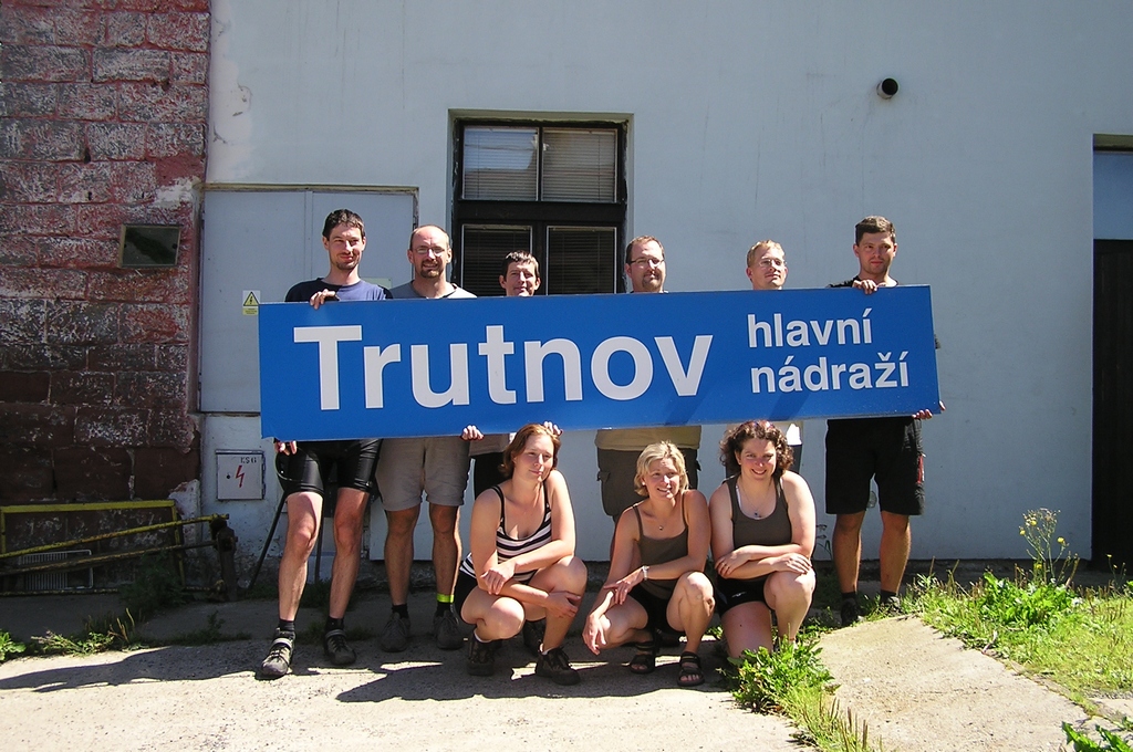 Ráno vstáváme do krásného slunečného dne a ještě lépe – vzhledem k dopravní dostupnosti zkracujeme dnešní trasu na pouhých 30 km, a pak že to nejde. Milan si v pohodě mění duši a já prasklé dráty. A pak už to podél vody sviští až do Trutnova. Fotka s cedulí na nádraží, vyšperkovaná tím, že jí držíme v rukou, neb se válela po zemi. Jedeme domů v nohách během tří dnů bratru nějakých 180 km. Proto i někteří závodníci cestou domů usínají. I já už půjdu spát jsou přeci jenom 2.00 ráno.