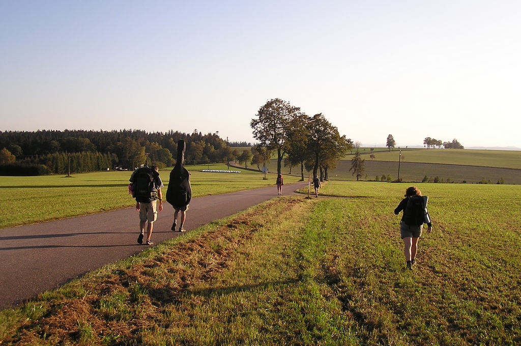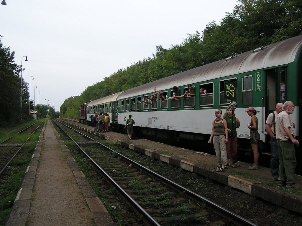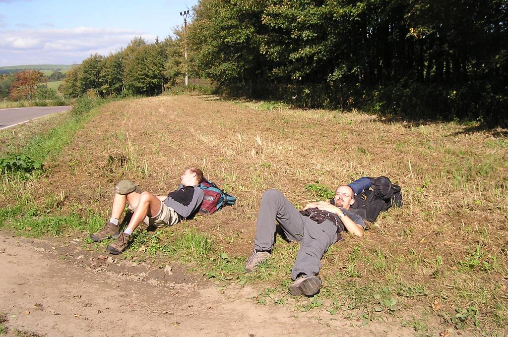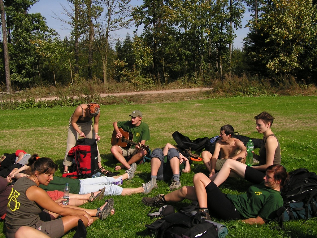 Cesta do Potštejna na nedělní nocleh nebyla dlouhá a vedla příjemným terénem podél Orlice, takže jsme si mohli dovolit i odpočinkové intermezzo na louce s hudebním, sportovním a občerstvovacím programem. Když jsme v brzkém odpoledni dorazili do Litic, nebyli jsme sice zcela zemdleni celodenním pochodem, nicméně to neznamená, že bychom nebyli zklamáni zprávou o vyjedených zásobách tamější hospody. Ale rozhodně jsme na tom nebyli psychicky tak zle jako pan hostinský, který ze sebe vypravil jen zoufalé: „Čtyři sta obědů v prdeli!“. Nakonec se ukázalo, že nějaký ten smažák a ovocný kynutý knedlík se i ve vyjedeném podniku dá vyčarovat. Nevýhodou bylo, že některé trasy pak začaly trousit klamné zprávy, že jsme se o těch čtyři sta obědů postarali my, čemuž je dost obtížné uvěřit, uvážíme-li, kolik nás na Stezce bylo: Linda s Mrožem, Veronika s Václavem, Vašek, Vítek, Misíci, Režní, Irča, Hanka, Karel, Kamila, Kamila, Janka a já.