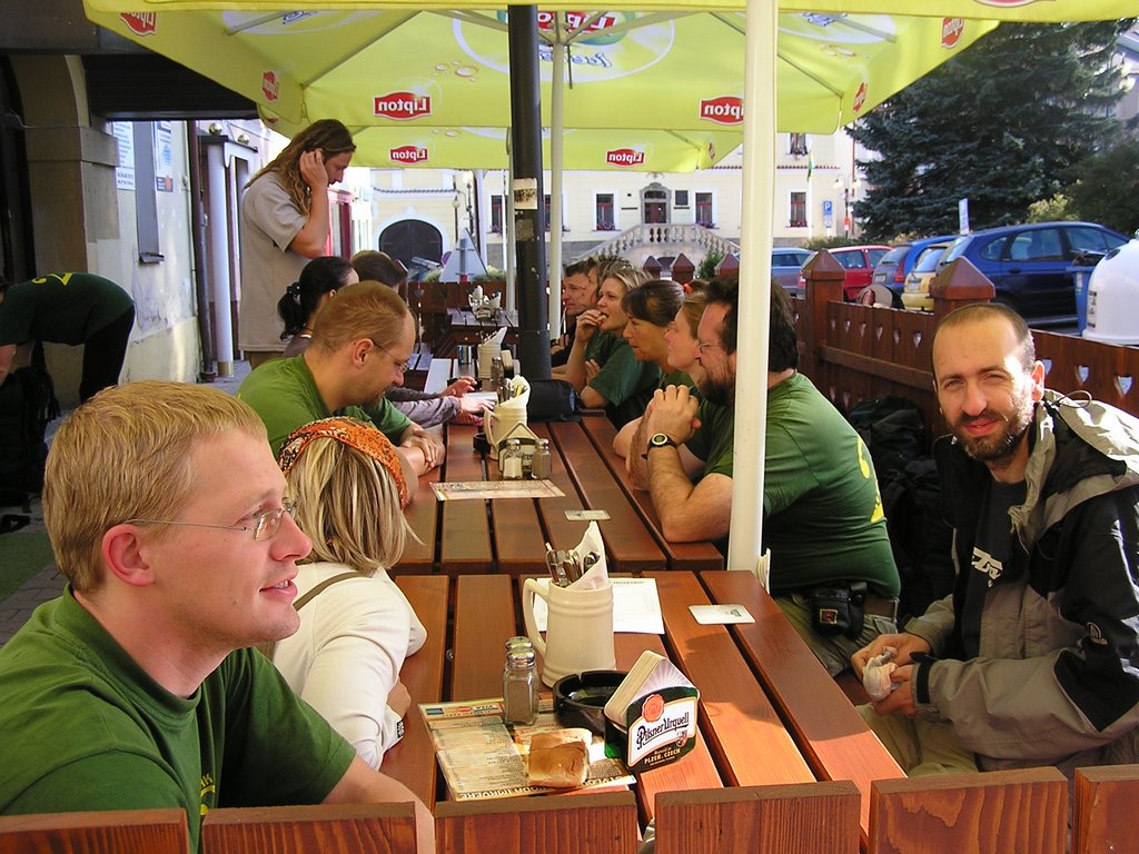 Nedělní ráno jsme oslavili bohatou snídaní (volně přecházející do oběda) na žamberském náměstí v restauraci Imrvere. Slečny servírky nepřestávaly prokazovat nebývalé množství trpělivosti a pochopení, ani když došlo na náhlé změny objednávek z dvouvejcových omelet na omelety třívejcové apod. V nabídce restaurace byli i taliáni (tedy byly taliány), ale Vašek si Itala prosadil i přes zřejmý odpor části kapely již večer, tudíž na hudební ztvárnění snídaně nedošlo.