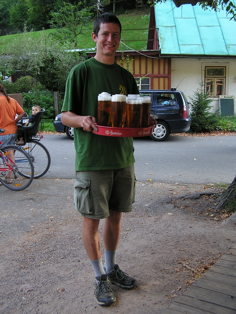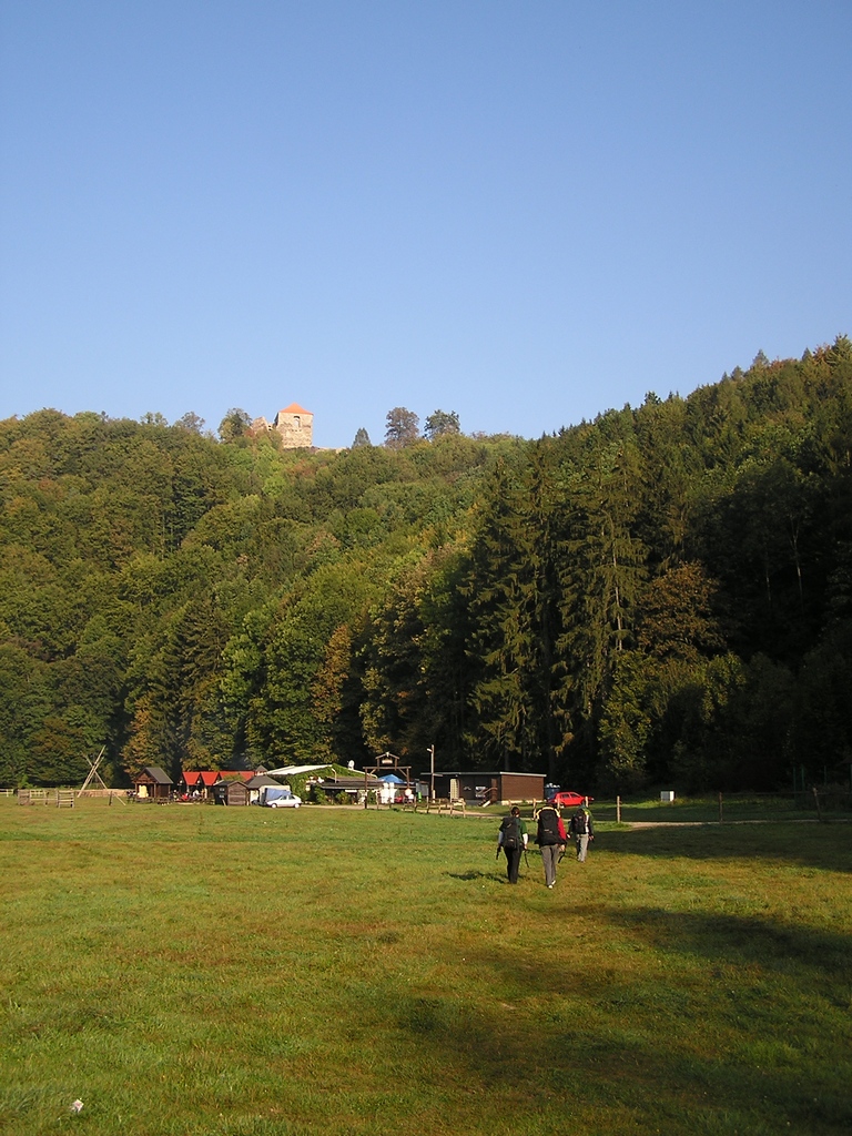 S Jankou a Irčou jsme na Stezku přijely o den později – do Žamberka jsme dorazily v sobotu v podvečer. V hostinci Na kopečku (nacházejícím se na dně údolí Orlice) jsme našly první dvacítkový voj, který se takřka ztrácel ve velkém (a chladném) sále, kam ustoupil před místními fotbalovými fanoušky, kteří ve výčepu vytvořili mlhu hustou tak, že by se dala krájet... O něco později dorazila i další část Dvacítky, která se zdržela v útrobách pevnosti Hanička, a pan hostinský konečně mohl nosit na stůl další řízky. Získal od nás laskavou přezdívku Gramatikopulos. Upřímně řečeno, uniklo mi, odkud se vzala první část jeho nového jména, ale motivace té druhé části je jednoznačná: osmahlá líce, havraní vlas, orlí nos, podprůměrný vzrůst a pádné jednání (např. razance oznámení, že s jedním pivem za námi na sál chodit nebude!!) nás nenechaly na pochybách, že mu koluje v žilách něco kapek řecké krve. Ale nezapře ani tuzemské geny, konkrétně pověstnou českou uzavřenost: ráno, když se s ním Veronika chtěla rozloučit a poděkovat mu za nocleh, nebylo jí to dopřáno, protože pan Gramatikopulos se kdesi ve své taverně před námi pečlivě uzamkl.