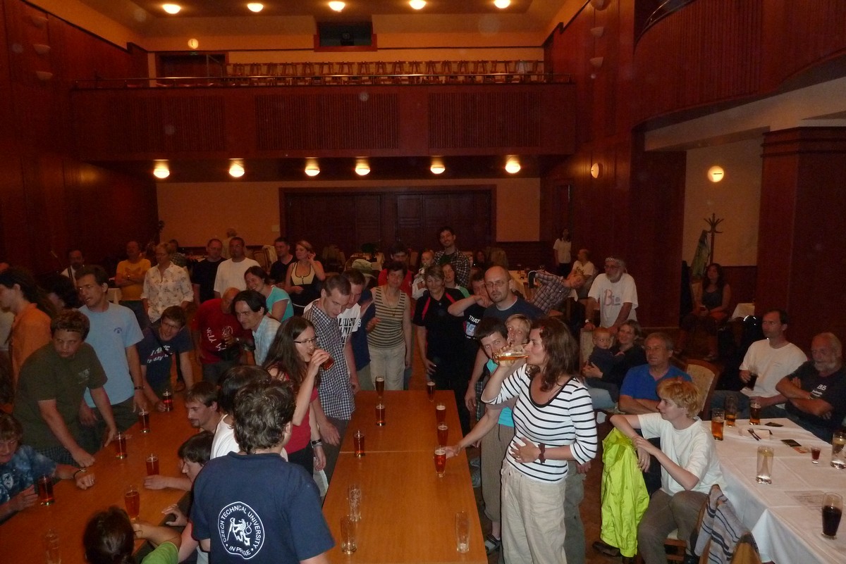 Večer jsme tradičně pobyli v Národním domě, kde se odbyl také píčcup. Zde Dvacítka díky Kamile zazářila v ženské soutěži – první místo. Taky tam byl řízek, spousta piva, kytary, bendžo, basa, flétny a ochotný personál, který nás vypakoval až ve dvě nad ránem. Ti spořádanější šli na kutě, jiní se ještě zdrželi v baru Netopýr. Ani v neděli se neodehrálo nic překvapivého: dohrávaly se soutěže, odpoledne se na vodu spustily Yalmary a PanTAKovky vyvrcholily závodem Pí/2. Vyhlášení, poděkování a dom. Počasí nám přálo, organizace byla propracovaná a skvělá, co víc si přát.