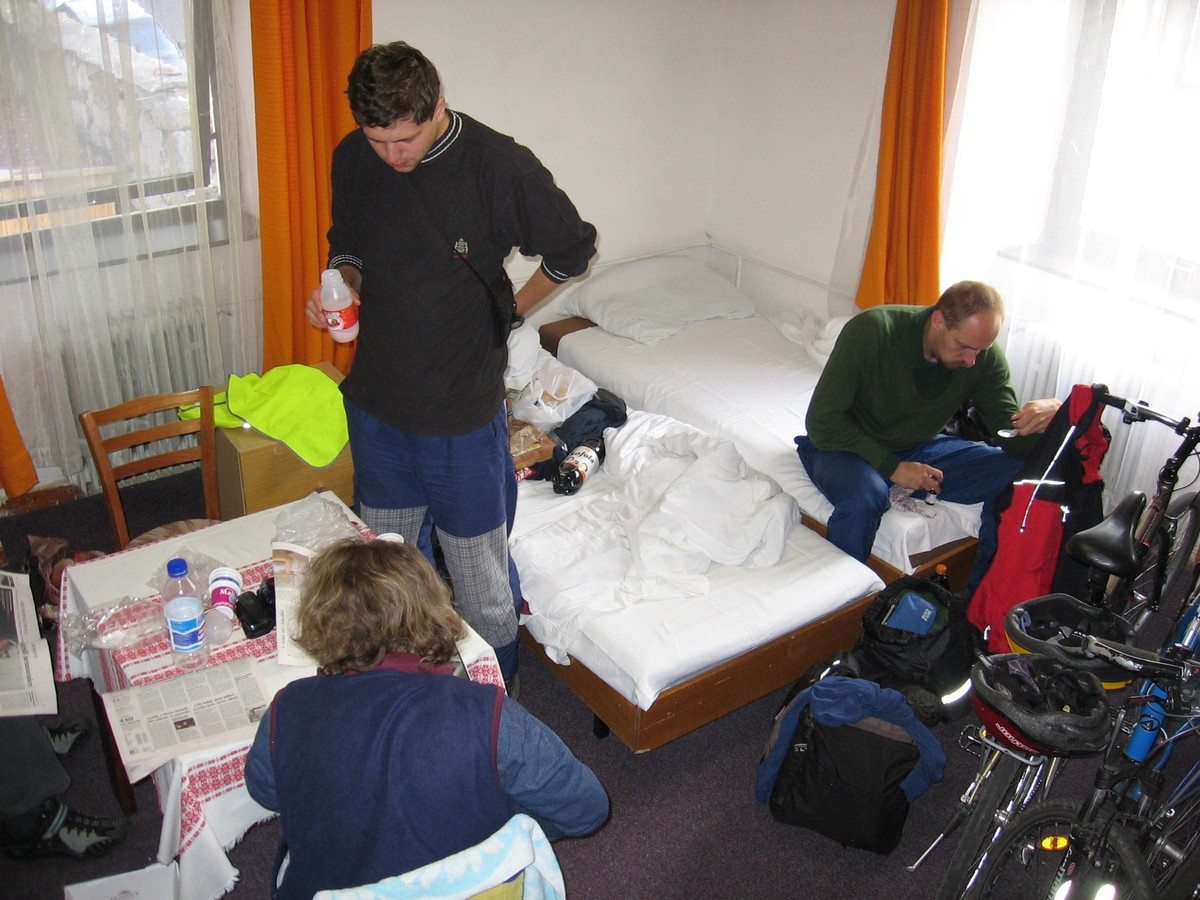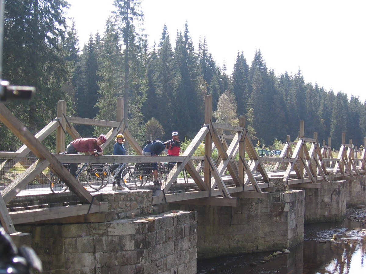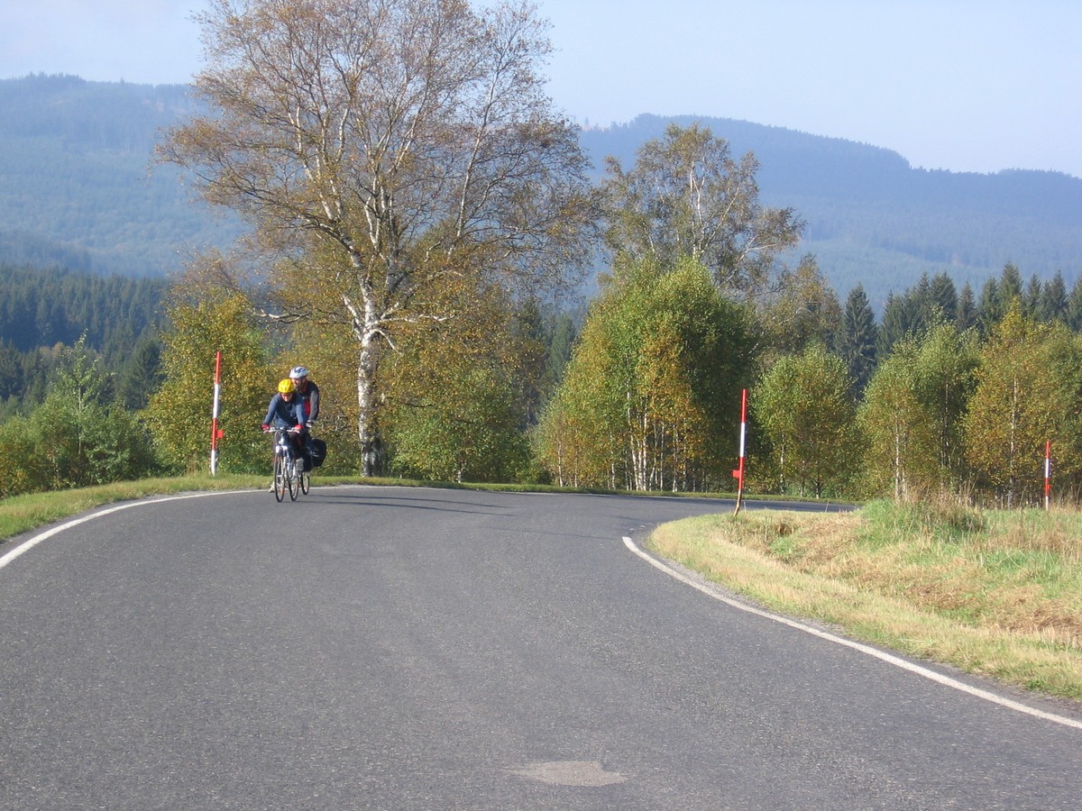 Ráno jsme se nasnídali z nabídky místních supermarketů a pokračovali centrem Šumavy. Dle kilometráže jsme vynechali cyklo na jezero Laka a pokračovali přes Gerlovu huť a Skelnou až jsme se objevili v Prášilech. Odtud jsme se vydrápali k Mechovu (Mossau) a podél posledního skluzu jsme se vyhoupli k Vchynicko - Tetovskému kanálu a podél něj frčeli na Rechle a Modravu, kde jsme poobědvali. Dále na Filipovu Huť a Kvildu, následovala Bučina, Furík a Knížecí pláň až jsme vjeli do Strážnýho. Z této obce dnes zbyly především vietnamské stánky s typicky vkusným zbožím, benzinová pumpa, bordely a neskutečný bordel. Tady se asi neubytujeme, jedině za hodinovou sazbu… Nedá se nic dělat, pokračujeme tedy dále přes Mlaka a už za tmy projíždíme Českými Žleby, kde nám také pšenka (rozuměj ubytování) nekvetla. Odtud padáme do Stožce, kde už jsme našli útulnou restauraci Kameňák s ubytováním. Vzhledem k pokročilé hodině jsme nepřipouštěli mnoho diskuzí a pana majitele jsme snadno přesvědčili, že se nás pět do dvoulůžkového pokoje krásně vejde. Stačilo vystěhovat část nábytku a Tomáš si pro jistotu lehnul venku a bylo to.