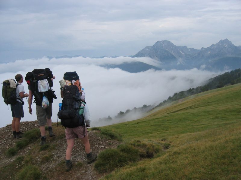 Přes všechna noční dobrodružství se probouzíme všichni suší, jenom Romanovi batohem v noci protékal potok. Kolem stanů je mlha jak mlíko, míjejí nás stáda všeho možného.
