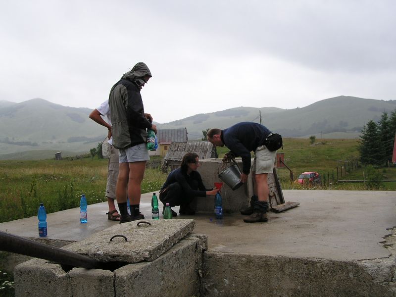 Stojíme na opuštěné silnici do opuštěné vesnice, řidič hledí do motoru a hypnotizuje díru v chladiči, kolem nás projíždějí taxíky - tranzity zřejmě z Nikšiče a dává se do deště. Smiřujeme se s myšlenkou, že zbytek cesty jdeme pěšky, ale nakonec u nás zastavuje skříňový náklaďáček, z něj vyskakují dva mladí kluci a společně s naším řidičem hledí do děravého chladiče.