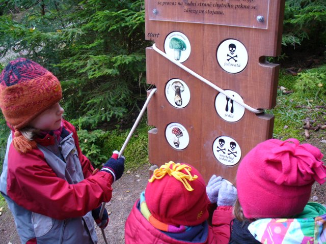 Také okolí penzionu bylo velice příjemné. Nachází se na samotě v lese, i když nedaleko hlavní silnice. Kolem penzionu protékal potůček, v lese jsme ještě sebrali nějaké hříbky.