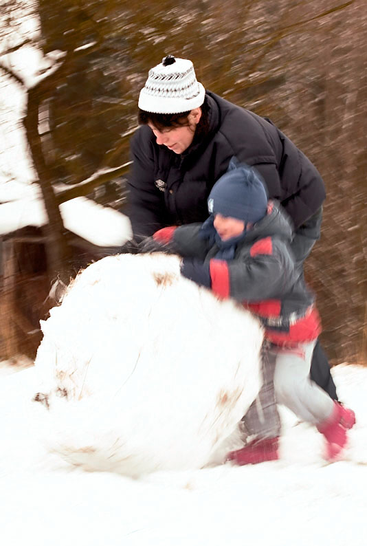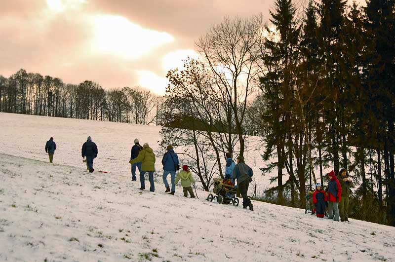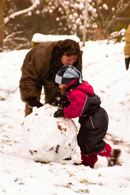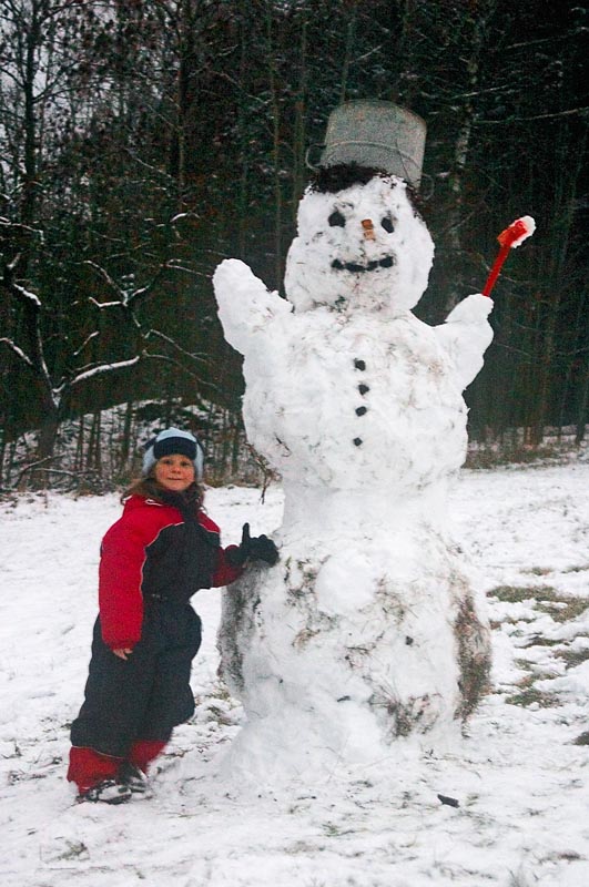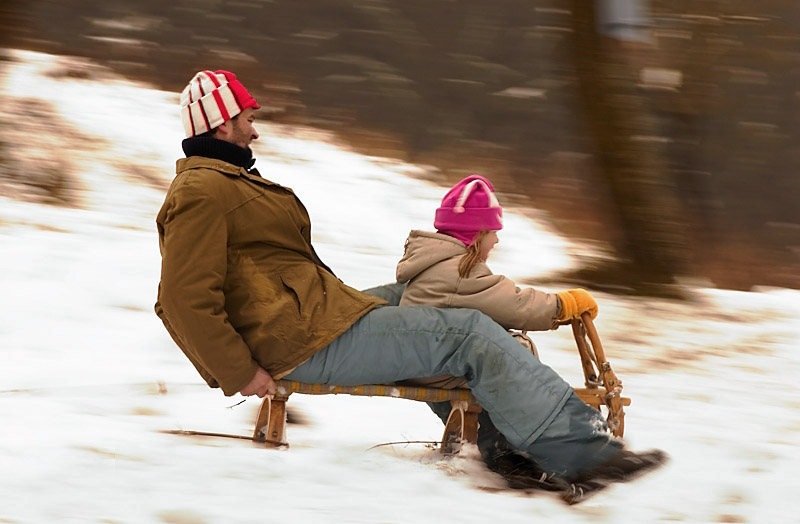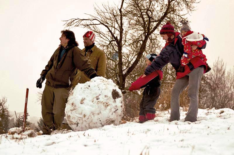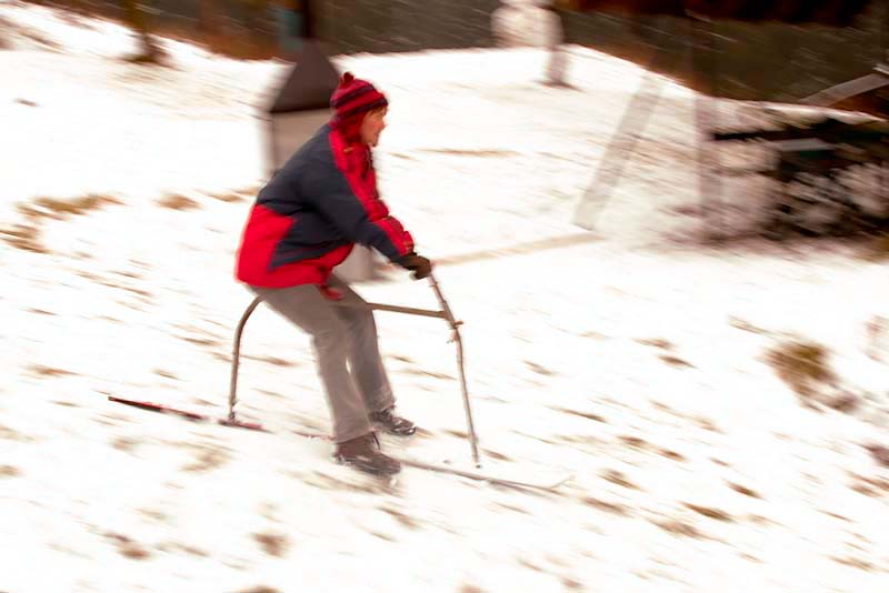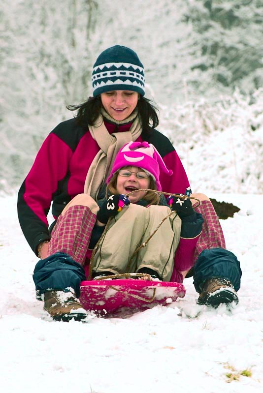 Těšili jsme se na společné blbnutí ve sněhu v podhůří Krkonoš, leč zima letos nepřicházela. Nakonec asi 5 cm sněhu napadlo večer po příjezdu na chatu. Milan ráno z půdy vytáhl sáňky a pekáče a všichni se jich s radostí chopili. Děti nadšeně jezdily z kopce a také do kopce, když sehnaly dospělý potah – např. Davida. Kdo zrovna nejezdil, stavěl sněhuláky.