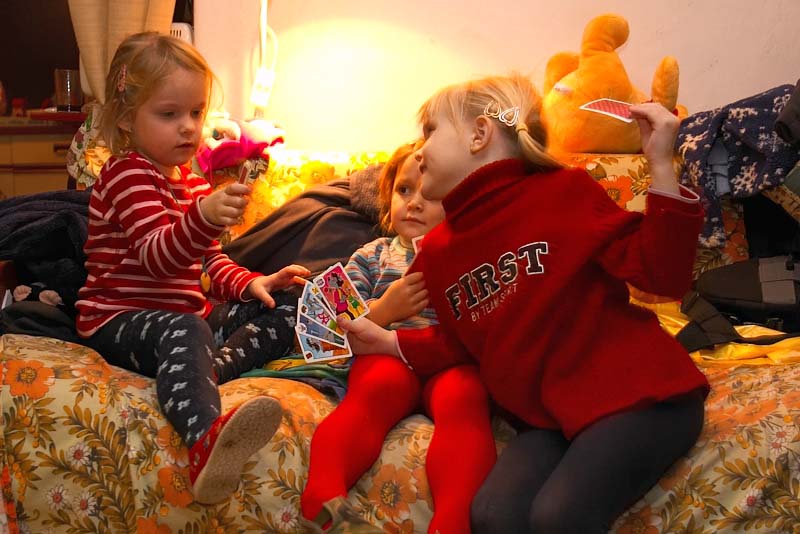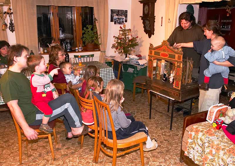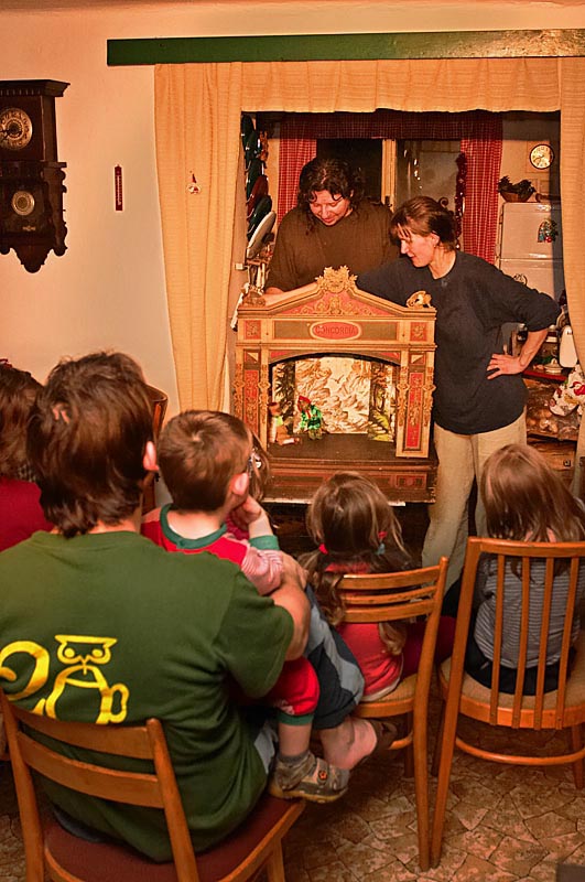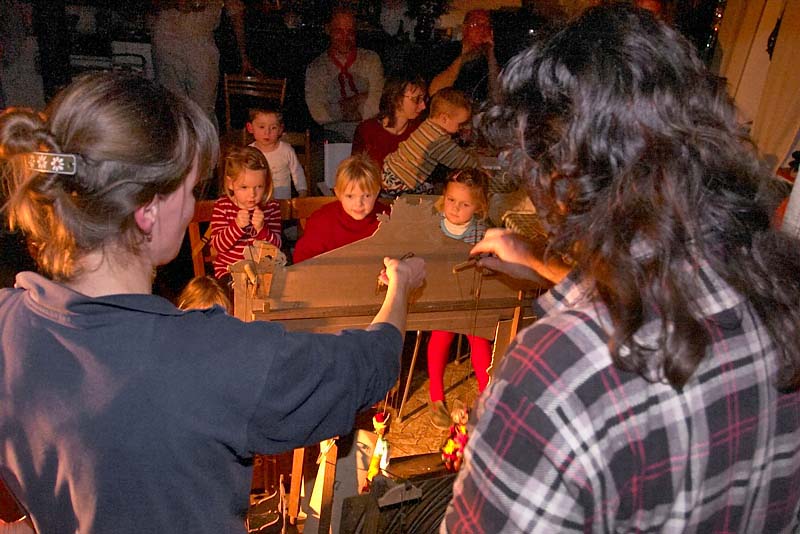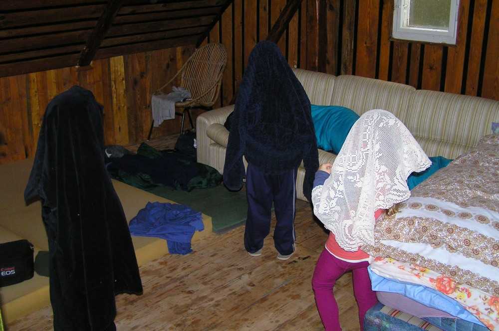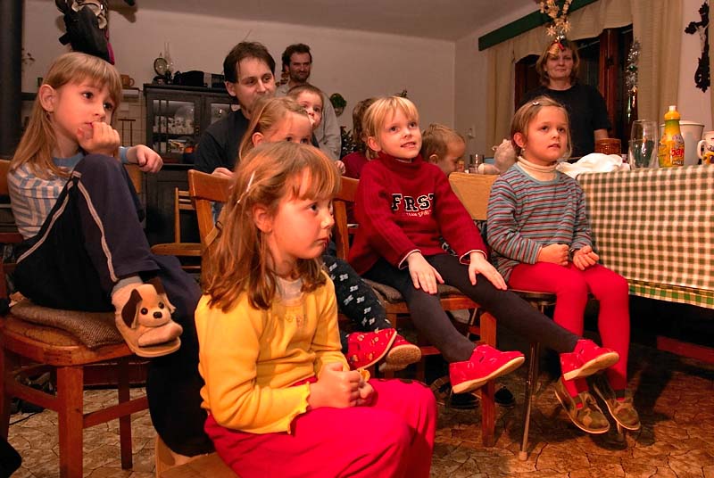 Na chalupě nás Kamila celých 5 dnů hostila dobrým jídlem, Milan pilně topil a motal se – a všichni pánové s ním – kolem čepu. Okolo kamen se neustále sušily promáčené boty a oblečení a okolo pobíhala smečka dětí. Napříč generacemi se hrály hry. Hračky měnily své majitele. Dva večery nám ochotníci Marcela a Zdeněk zahráli loutkové divadlo, děti i dospělí sledovali s otevřenou pusou (úžasem a úsměvem). Jako nejlepší chůva se uplatnil Honza, soustředil kolem sebe všechny děti a rodičové měli volno.