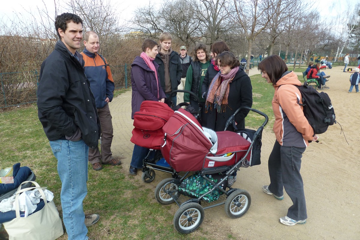 Od země ještě stoupal zimní chlad, a proto početné řady gratulantů raději zvolily postávání s kelímky pravého staroplzeneckého šampaňského okolo kočárků s nejmladšími členy Dvacítky, příležitostně skláníce své trupy tu nad roztomilým gestem robátkovým, onde zas nad dekami plnými rozmanitého pohoštění, každý podle své chuti a svého založení. A našli se i tací, jimž jejich založení velelo nelitovat kroků navíc a v pravidelných intervalech odbíhat pro občerstvení k nedalekému občerstvení, kde točili Smíchov.