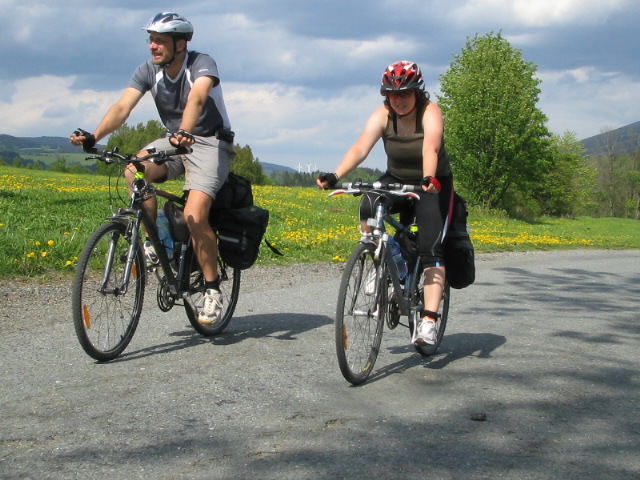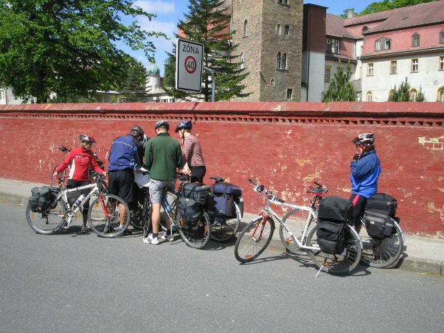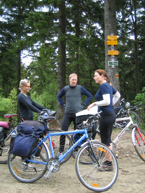 Po některých nedorozuměních při zařizování dopravy, jsme si spokojeně v Hutníku vychutnávali fakt, že máme 9 rezervací na kola, ačkoliv vezeme pouze 4. Ale vše dobře to dopadlo a sekce Hutník se setkala se sekcí Pendolíno večer ve středu 6.5. v Bohumíně na nádraží. Jediné, co mě moc neuklidňovalo bylo to, že jsme byli pouze ve výšce 200 m.n.m. Sekce Hutník: Káča, Míša, Janka, Roman, sekce Pendolíno: Monča, Péťa, Milan. Vůdce nám sehnal ubytování v nádražácké ubytovně, takže jsme si v klidu mohli dat pivo, pizzu, vyhlídnout podniky na snídani a jít spát. S představou vstávání v 7:30, jsme stejně nemohli někteří dospat a v 9 jsme zasedali do pedálů.