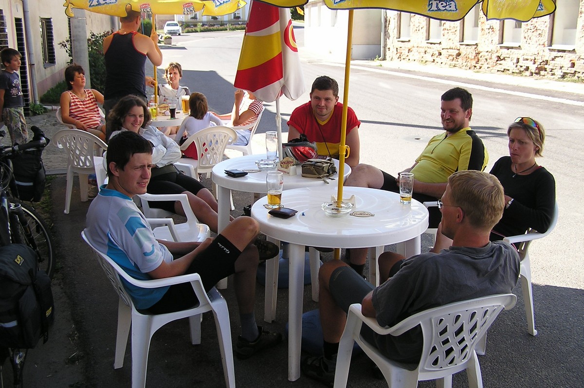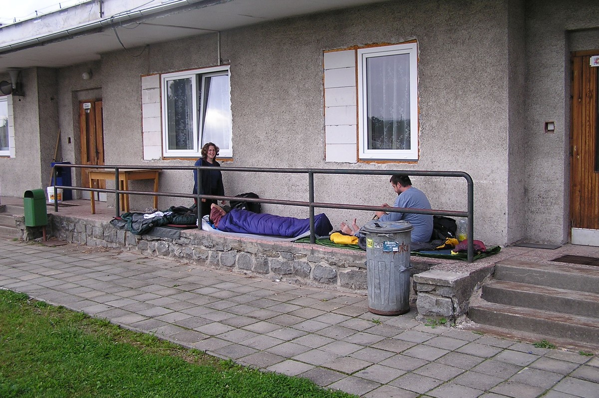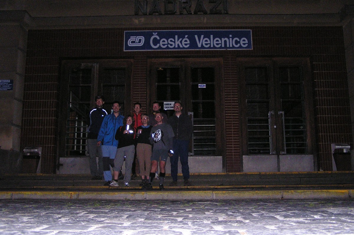 Jako obvykle jsme jeli z pražského hlavního nádraží a jako obvykle jsme do cílového místa prvního dne (startovní místo etapy, pozn. aut.) přijeli za tmy. Dobrou zprávou bylo, že jsme se cestou stihli posilnit v hospůdce ve Veselí, kde jsme měli nucenou mezivlakovou pauzu. Špatnou zprávou pak bylo, že ve Velenicích začalo pršet, a my museli přehodnotit původní plán, že pojedeme spát za městečko. Zůstali jsme u fotbalového hřiště, hned vedle diskotéky.