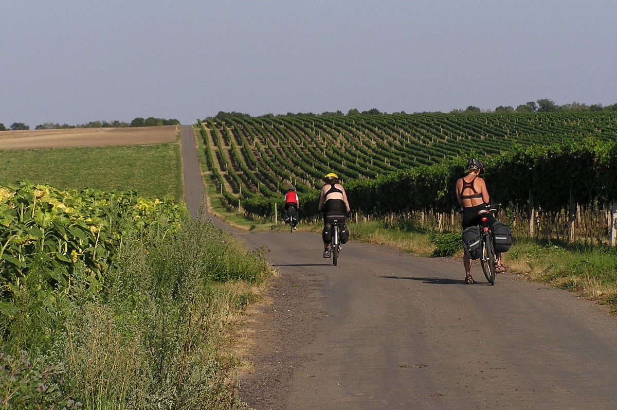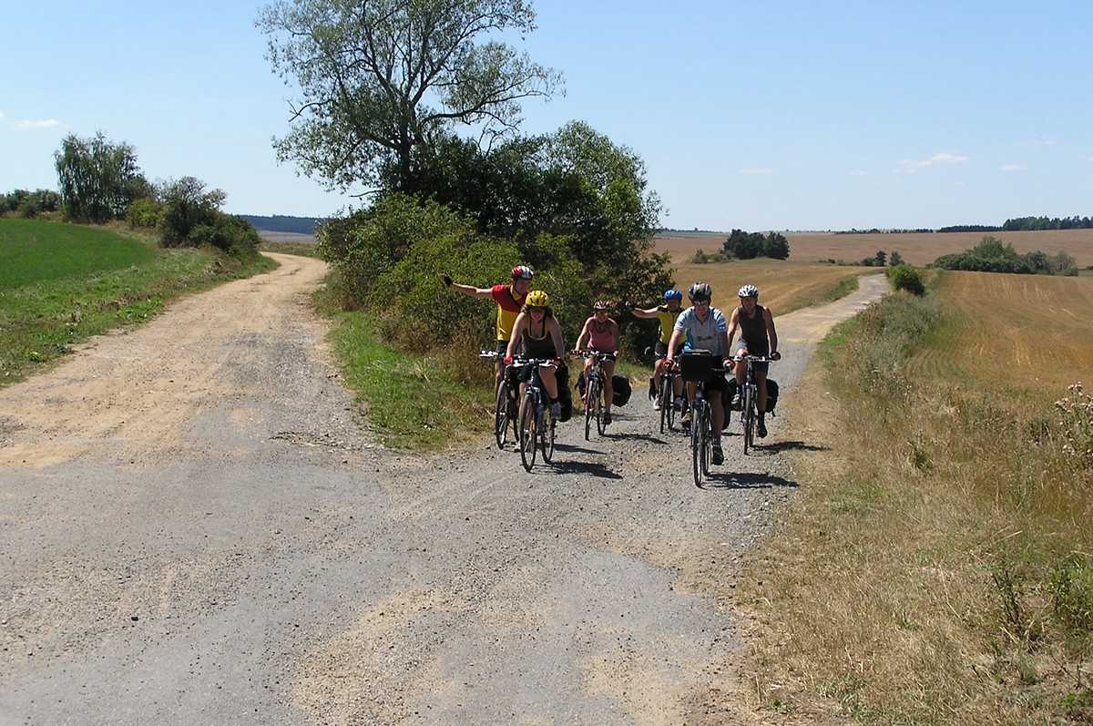 Poslední, čtvrtý den nás čekal průjezd hlavními městy moravského vinařství Mikulovem, Valticemi a dalšími. Čtvrtý den na kolech už mám obvykle dost, a tak to bylo i tentokrát. Nevím, jestli proto si nepamatuju nic jiného, než oběd v průjezdu ve Valticích, výhledy z daleka na Mikulov a průjezd oborou už u Břeclavi, kde jsme museli kola pronášet skrz brány. Tuto etapu objezdu jsme zakončili spěchem na vlak z Břeclavi do Prahy. Věřili jsme původně, že přejezd domů bude komfortní a že při takové frekvenci vlaků si budeme moci vybírat, kterým pojedeme. Opak byl pravdou: poslední vlak beroucí dostatečný počet kol (tj. nás všech) jel asi ve tři odpoledne…