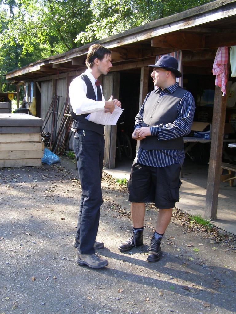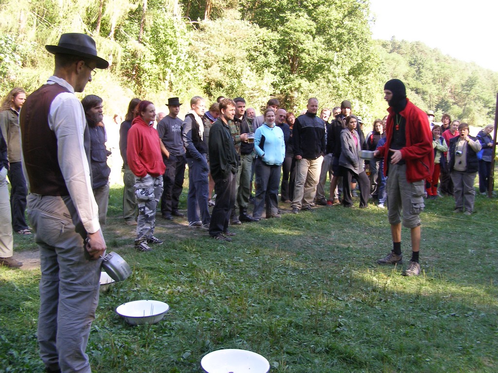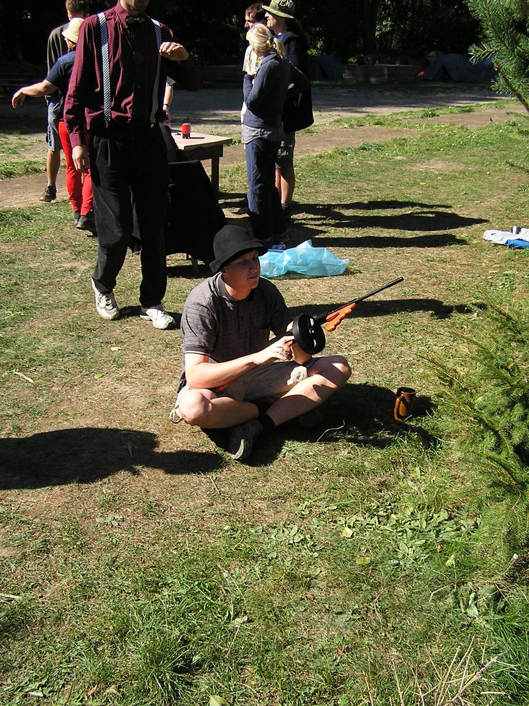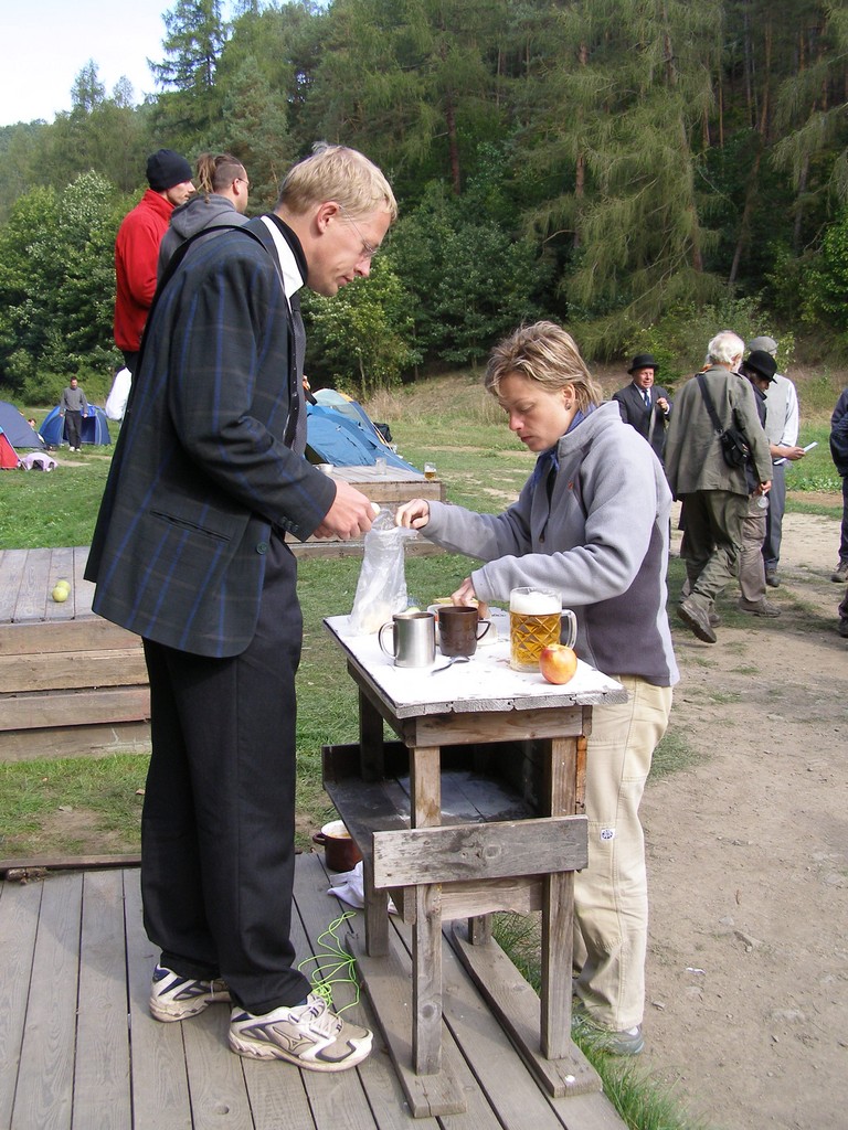 V pátek jsme se sešli na náplavce u Čechova mostu, kde jsme úspěšně blokovali přístup turistů k parníku. Náš parník ale měl problémy s policií, jak nám řekla Erika, takže kotvil v jiném přístavišti. V rámci utajení jsme místo odjezdu dostali v šifře. Nicméně v době mobilů a Googlu ji většina účastníků vyřešila dost rychle. Jenom se asi v pizzerii Al Capone divili, proč se jich furt někdo ptá, kolik stojí čaj a malý salát (100 Kč, což bylo součástí názvu stanice Stodůlky, ke které jsme měli směřovat). V přístavišti Stodůlky jsme si ještě stihli dát jedno pivo a parník už vyplouval směrem na Beroun. Byli jsme rozděleni do rodin po třech členech a tak jsme taky absolvovali štvanici. Šli jsme podle mapy Chicaga a cestu jsme si mohli zkrátit, pokud jsme byli na gangsterských dostaveníčkách, resp. pokud jsme si z nich něco pamatovali. Noc byla celkem jasná a štvanice trvala asi 2 hodiny.