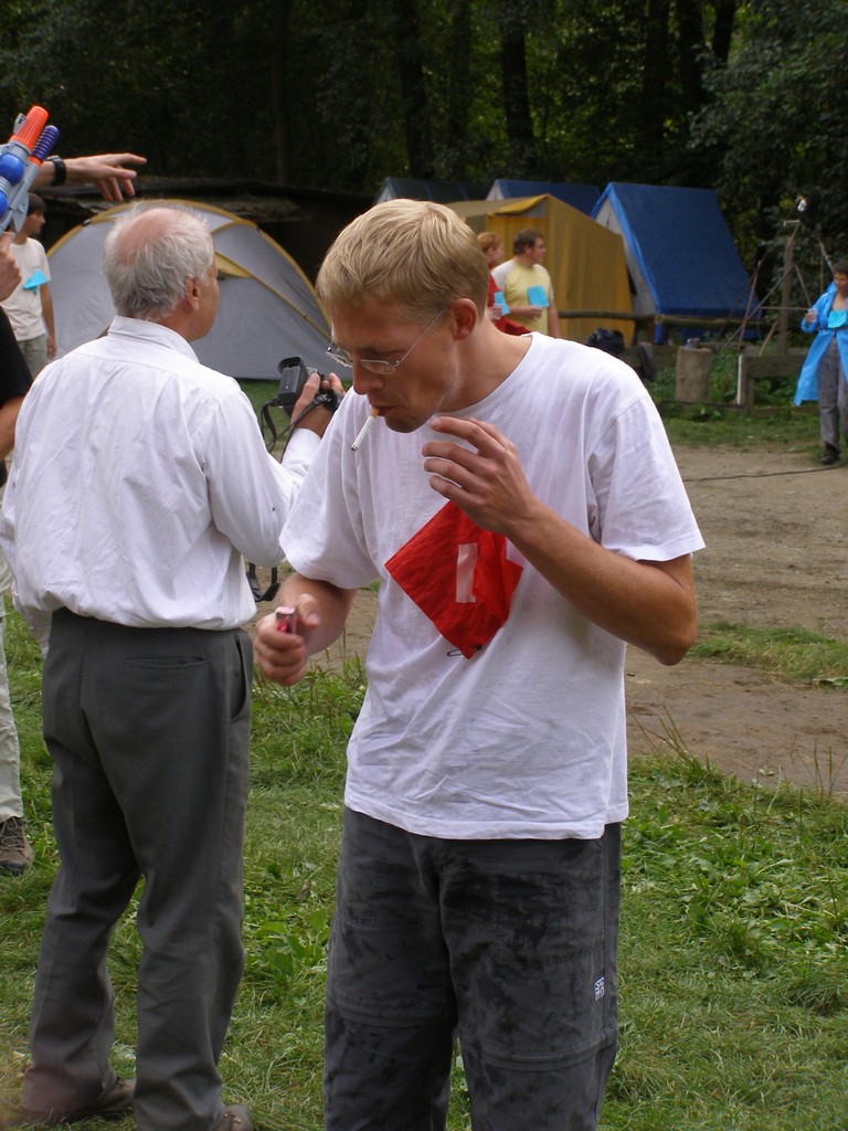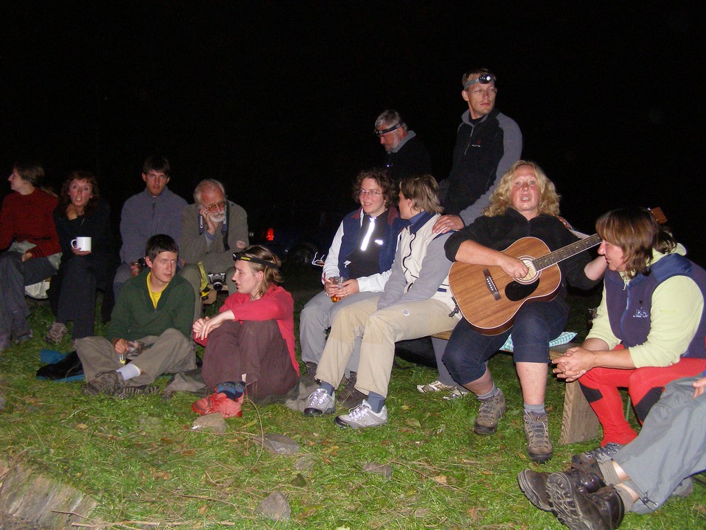 Prométheovka se tentokrát šla se sirkama (schválně, jak daleko dojdete s jednou hořící sirkou?) a večerní program byl obohacen také o taneční soutěž. Parket byl nasvícen reflektory aut, z jednoho z nich se linula reprodukovaná hudba (Jen pro ten dnešní den...). Zvláštní na Lesních hrách, ale při pohledu na zpívajícího Šimona a dámské sbory, jsme organizátorům museli i tuto ne zrovna lesní soutěž odpustit. Potom už jenom oheň, kytary, jinovatka. Poslední píseň, kterou si vybavuji, byla "Pátá", která opravdu zazněla v pět nad ránem.