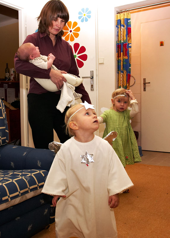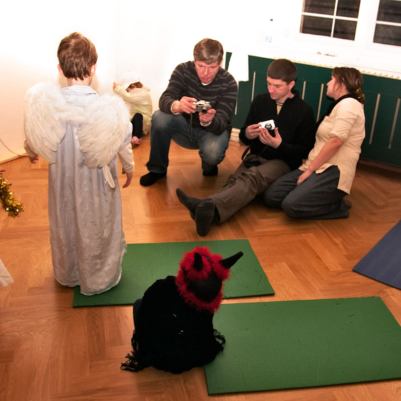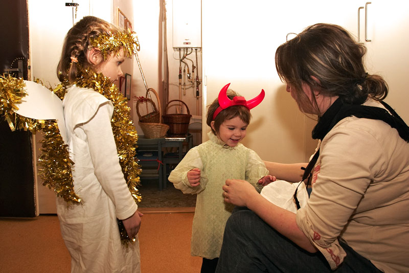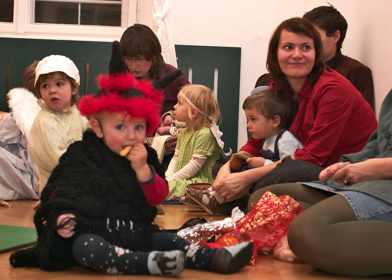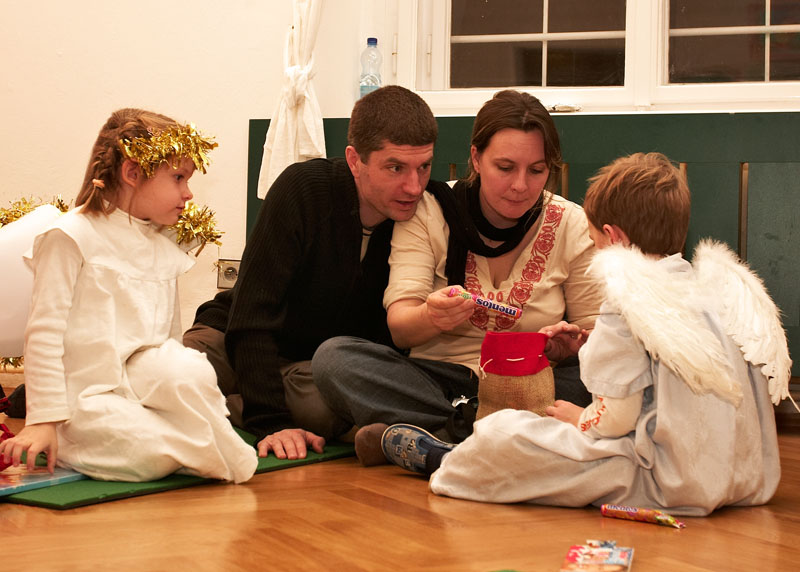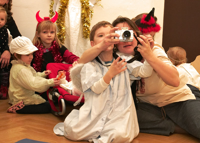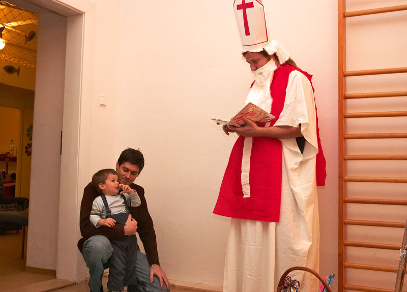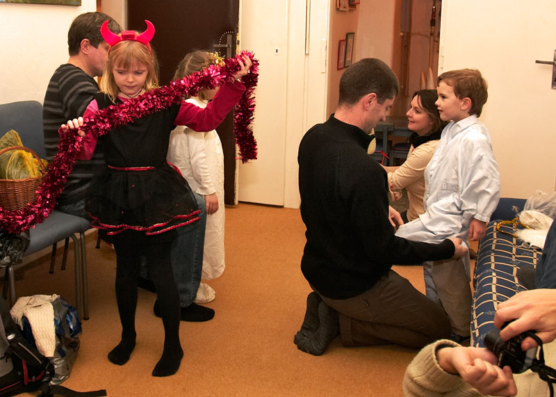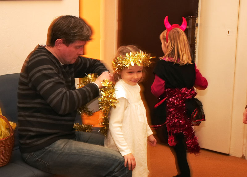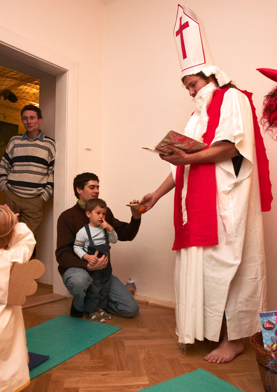 Na Mikuláše navštívil Rodinné centrum Letná (Hanko, děkujeme) Mikuláš Václav s čerticí Kamilou s košem plným dárečků. Už tam na ně čekaly některé trochu s obavami dvacítkové děti, které mezitím prozkoumaly všechny hračky, snědly nabízené sladkosti a převlékly se za malé čertíky a andílky. Rodiče jim ve všem pomáhali. Ty starší zazpívaly, všem se připomněly různé neplechy a Mikuláš s čertem rozdali dárky. Nikoho do pekla s sebou čert nevzal, a tak jsme se všichni spokojení vrátili večer po hezkém odpoledni domů.