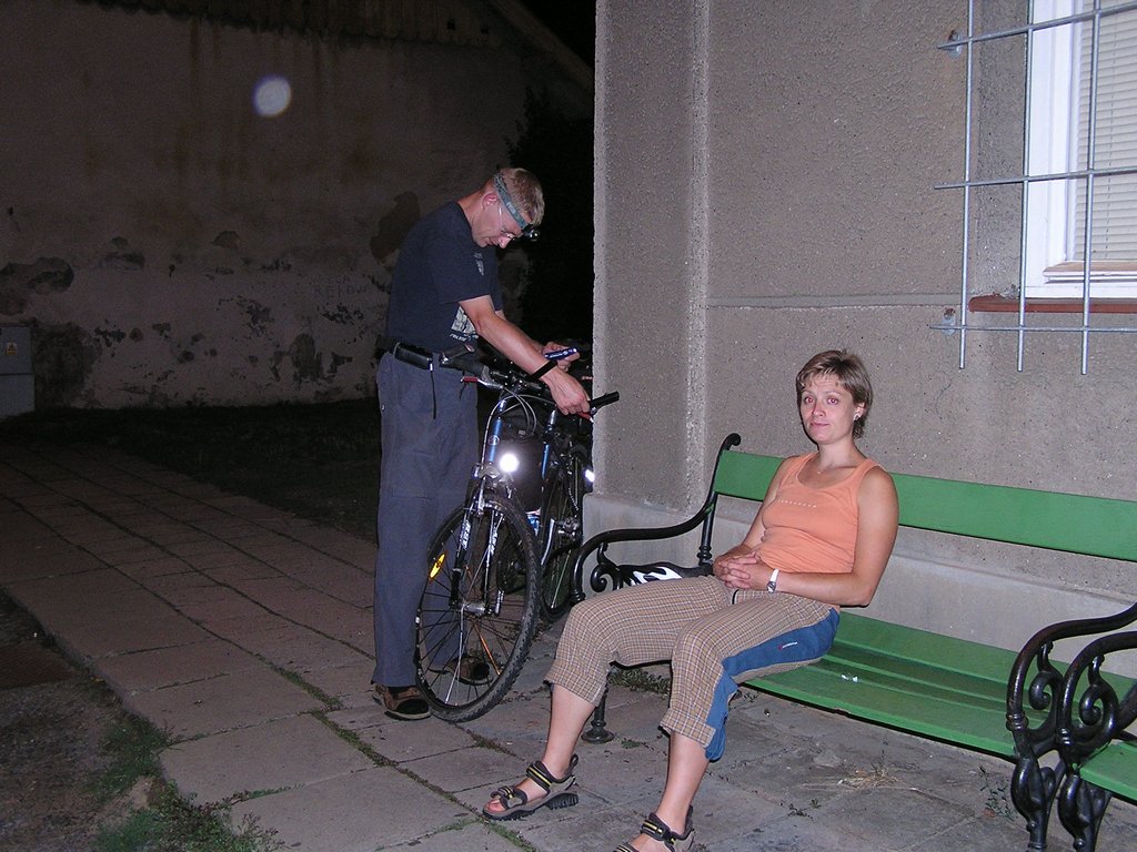 Převlékáme se tedy zpět do mokrých svršků a černou tmou se vydáváme 12 km do Karviné. Kolem 11 večerní jsme stanuli před typickou panelákovou kolejí Slezské univerzity, nahlásili jsme se u paní děžurné a za krásných 190 Kč za osobonoc jsme dostali pokoj s vlastní koupelnou. Je pravda, že koupelna byla z pomačkaného umakartu a dveře většiny skříní by vám při pokusu o otevření zůstaly v ruce, ale teplá voda teče, jsou tu peřiny, kola máme na pokoji a na balkóně lze usušit boty i prádlo, tak nač si ztěžovat. Po očistě těl a vykrámování mokrých věcí z brašen jsme ještě zaskočili k paní vrátné pro jedno a potom i pro druhé víno, které jsme pili rovnou z lahve (na pokoji není ani kelímek na zuby) – jako za mlada. Opět kolem jedné se ukládáme do peřin.