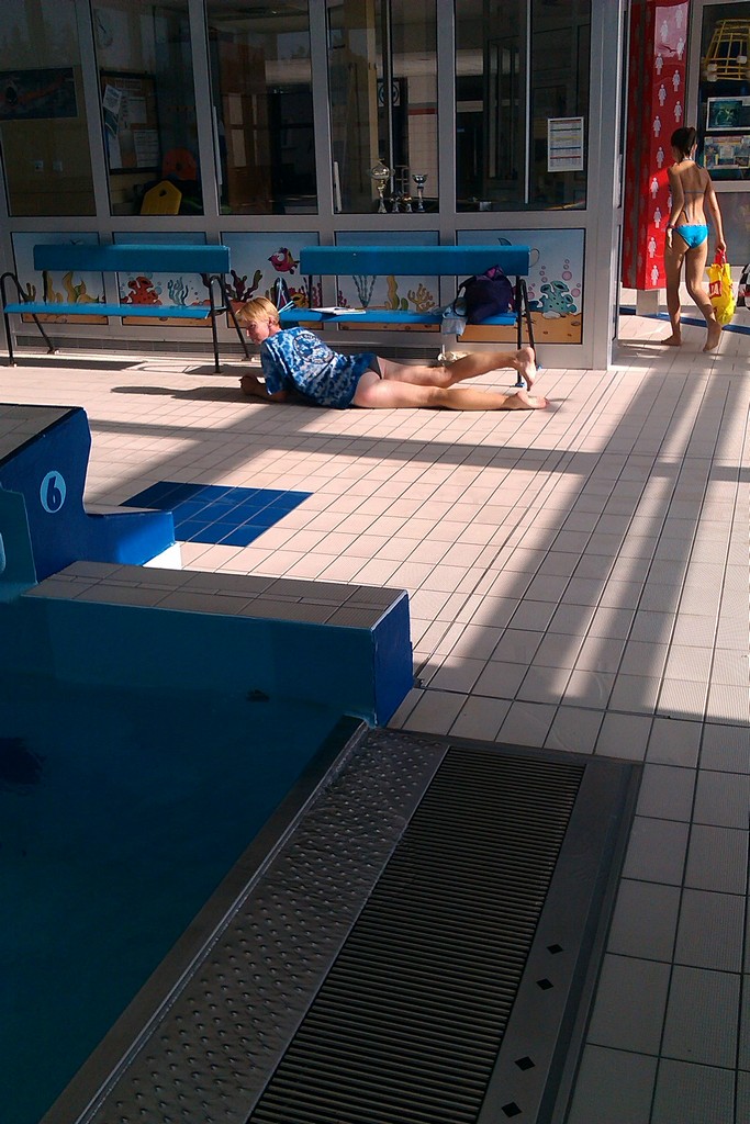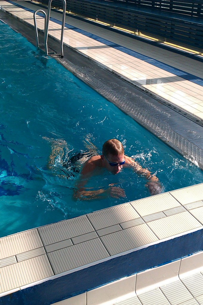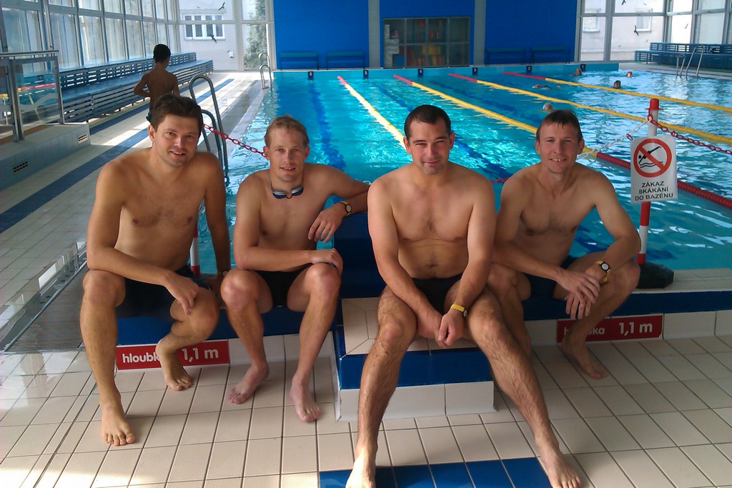 Připravit, pozor, start. Kluci si lehce po deváté ranní začali kroužit svých 76 bazénů. K dispozici měli 2 rezervované dráhy a i jinak téměř prázdný bazén. Jako první dojel Zbytek, který to k mému úžasu celé odkrauloval, druhý doplaval Milan a pak těsně za sebou Mrož a Petr. Všichni se vešli do hodiny, což předčilo má očekávání.