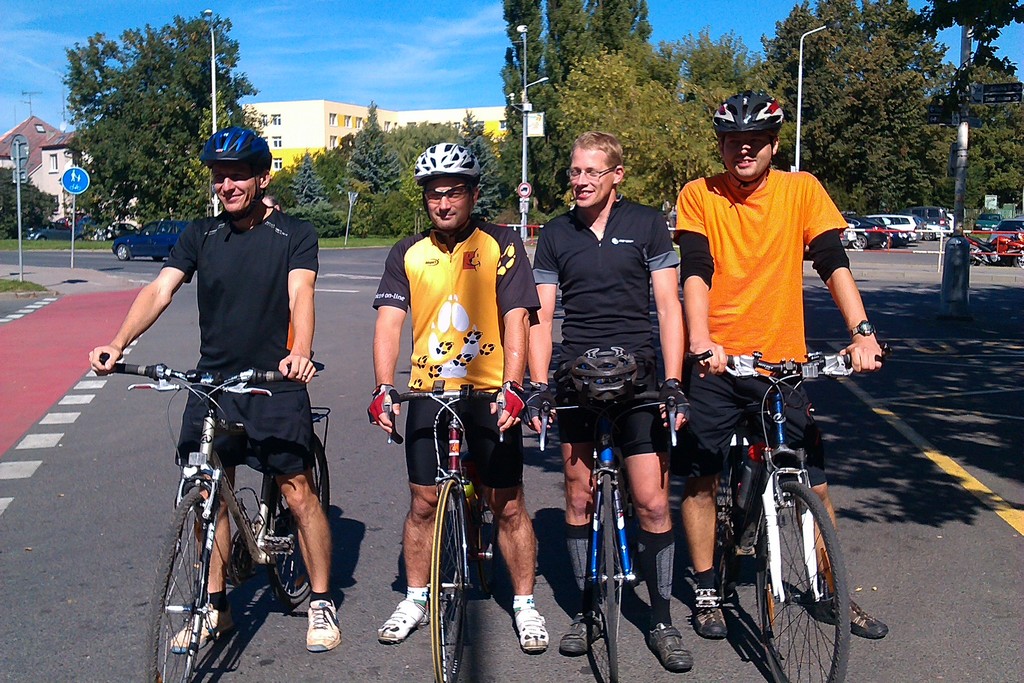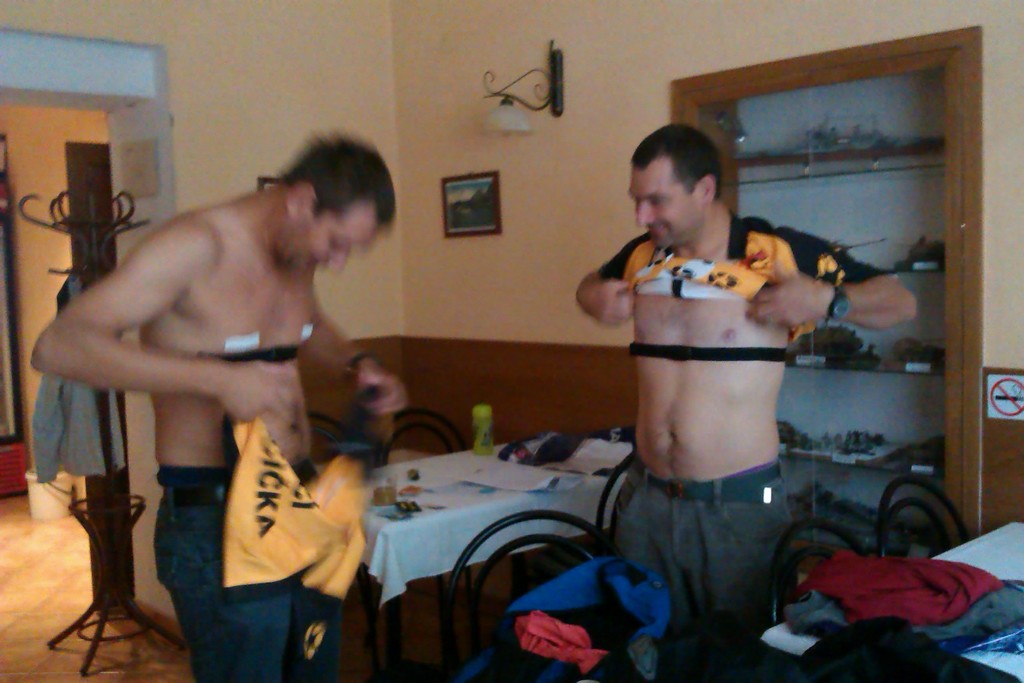 Dále jsme vedli debaty, jestli akci pojmout jako třídenní či dvoudenní, jestli na kole kroužit někde v severních Čechách nebo jet z Prahy do Ústí, apod. Během léta vykrystalizovala konkrétní podoba závodu: plavání v bazénu na Kladně v sobotu ráno, pak tam rovnou nasednout na kolo a jet do Ústí, tam přespat v penzionu a v neděli absolvovat ústecký půlmaraton. I závodníci krystalizovali. Ještě na konci srpna bylo přihlášeno 9 zájemců, z nichž 7 jich chtělo absolvovat celého půlželezňáka a 2 jen půlmaraton. Byli to: Milan, Petr B., Mrož, Petr M., Jirka R., Jirka S., Petr Vostatek alias Zbytek na celý závod a Enrico a Kuba M. na běh. Během září se však o slovo přihlásil podzim spolu s kapénkovými a jinými chorobami, což „vykácelo“ značnou část pelotonu.