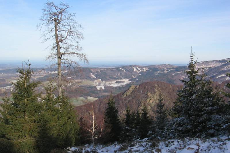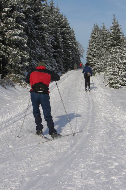 Na druhý den jsme se připojili k sedmnáctkové výpravě po okolních kopcích. Abych pravdu řekl, už nevím, kdo ze sedmnáctky stanovil trasu, čísla byla věru optimistická, naplánovaná trasa měřila k třiceti kilometrům. Naším cílem bylo kromě protáhnutí kostí ověřit či vyvrátit fámy o možném pohybu na běžkách po hřebenech Jizerek.