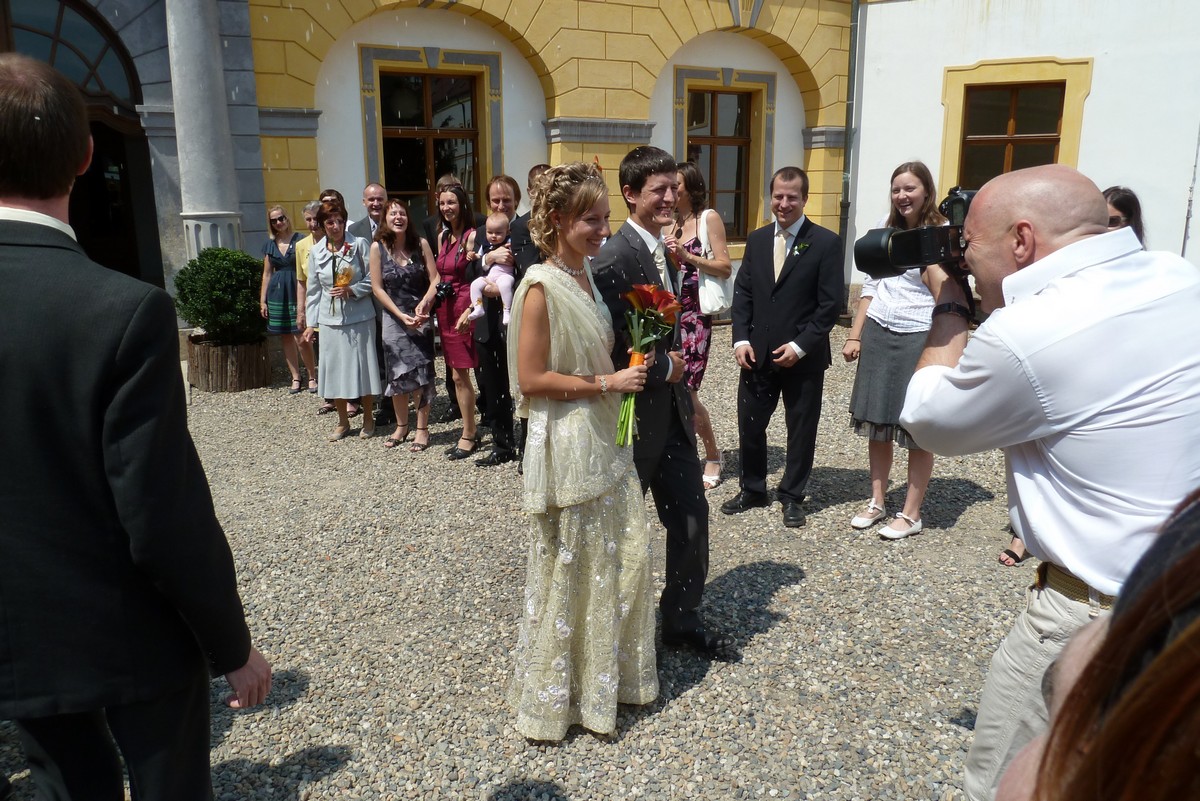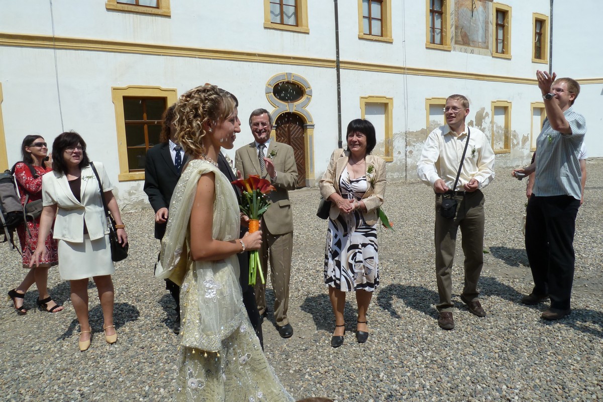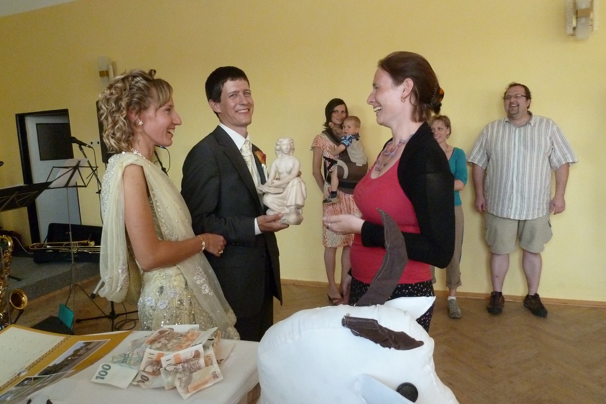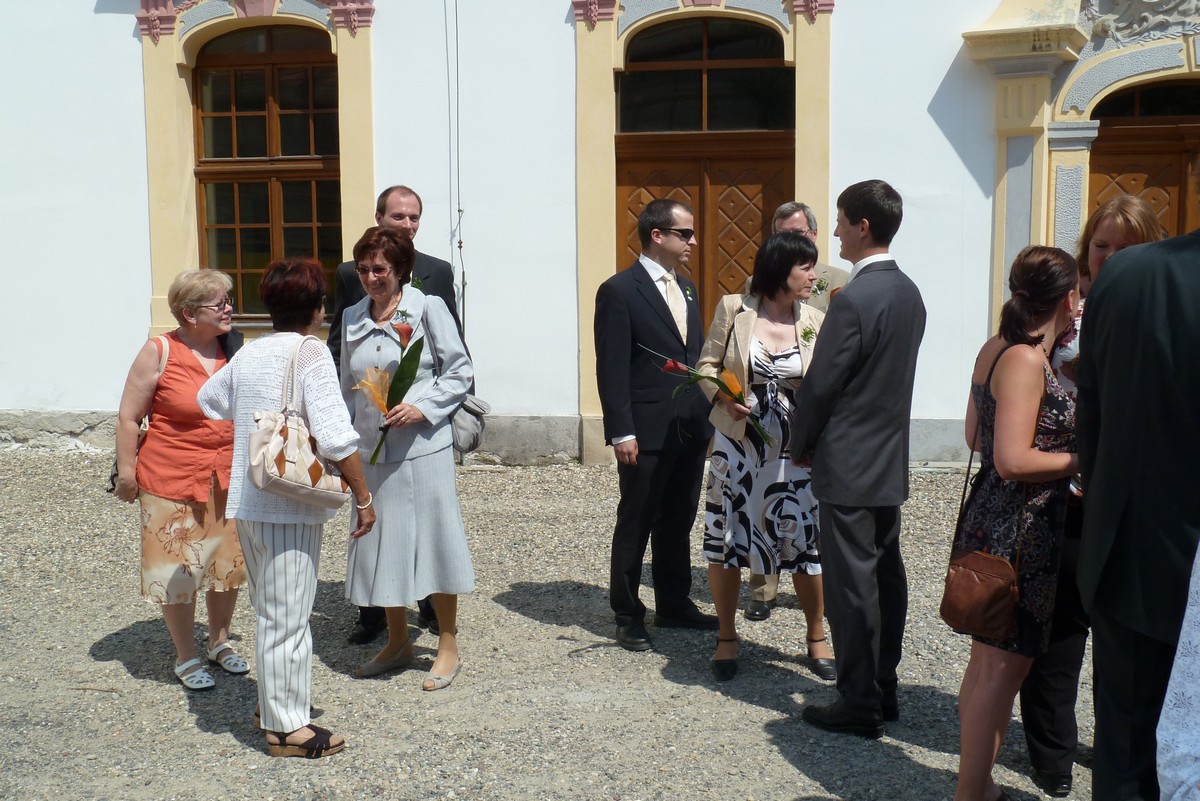 ...tentokrát Vašek s Mili. Svatba na děčínském zámku, mejdan na Maxičkách, nevěstě i ženichovi to slušelo, obřad byl přiměřeně krátký, počasí se také vcelku vydařilo. Mezitím jsme stihli malý výlet na Děčínský Sněžník, večer jsme úspěšně předali kozu s poschovávanou hotovostí a sochu, k tanci i poslechu výborně zahrála kapela Kdo má čas, v které účinkuje Vaškův brácha se ženou, zapařili jsme, něco bezmasých jídel jsme pojedli a vůbec to bylo povedené. Novomanželé si to prý moc užili a my také. Můžete posoudit z fotek: