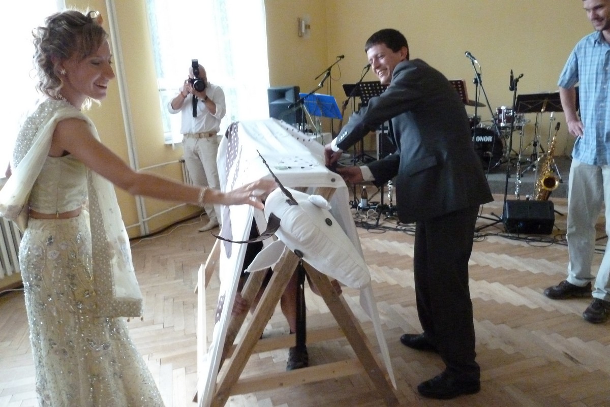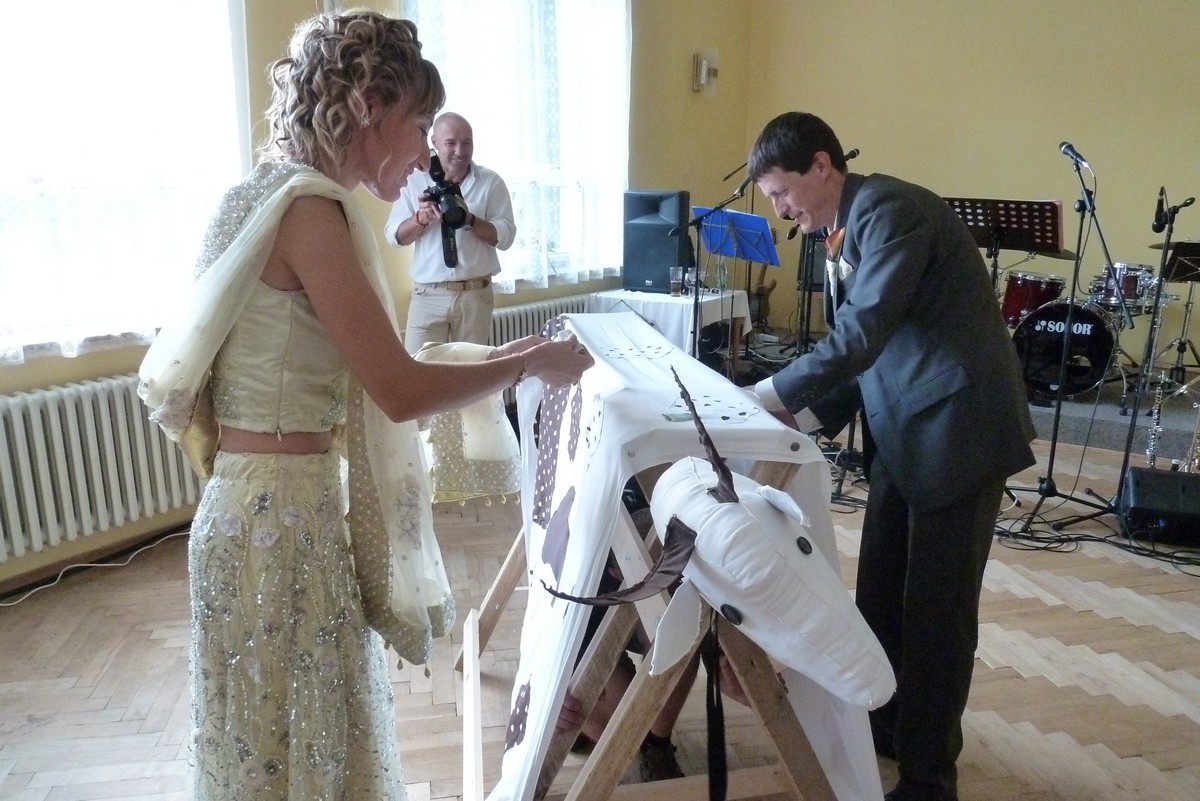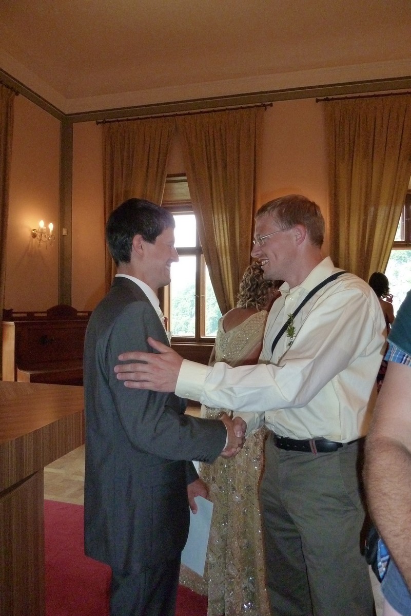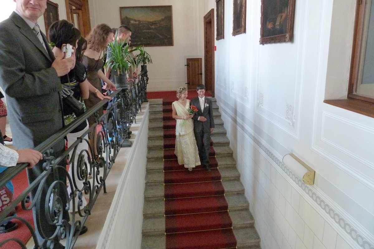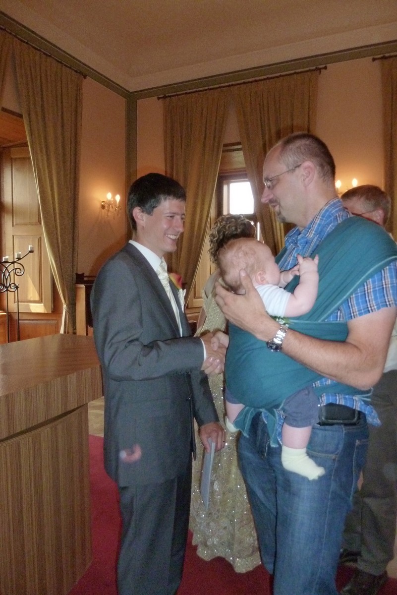 ...tentokrát Vašek s Mili. Svatba na děčínském zámku, mejdan na Maxičkách, nevěstě i ženichovi to slušelo, obřad byl přiměřeně krátký, počasí se také vcelku vydařilo. Mezitím jsme stihli malý výlet na Děčínský Sněžník, večer jsme úspěšně předali kozu s poschovávanou hotovostí a sochu, k tanci i poslechu výborně zahrála kapela Kdo má čas, v které účinkuje Vaškův brácha se ženou, zapařili jsme, něco bezmasých jídel jsme pojedli a vůbec to bylo povedené. Novomanželé si to prý moc užili a my také. Můžete posoudit z fotek: