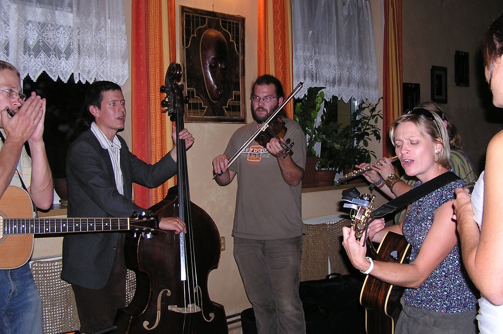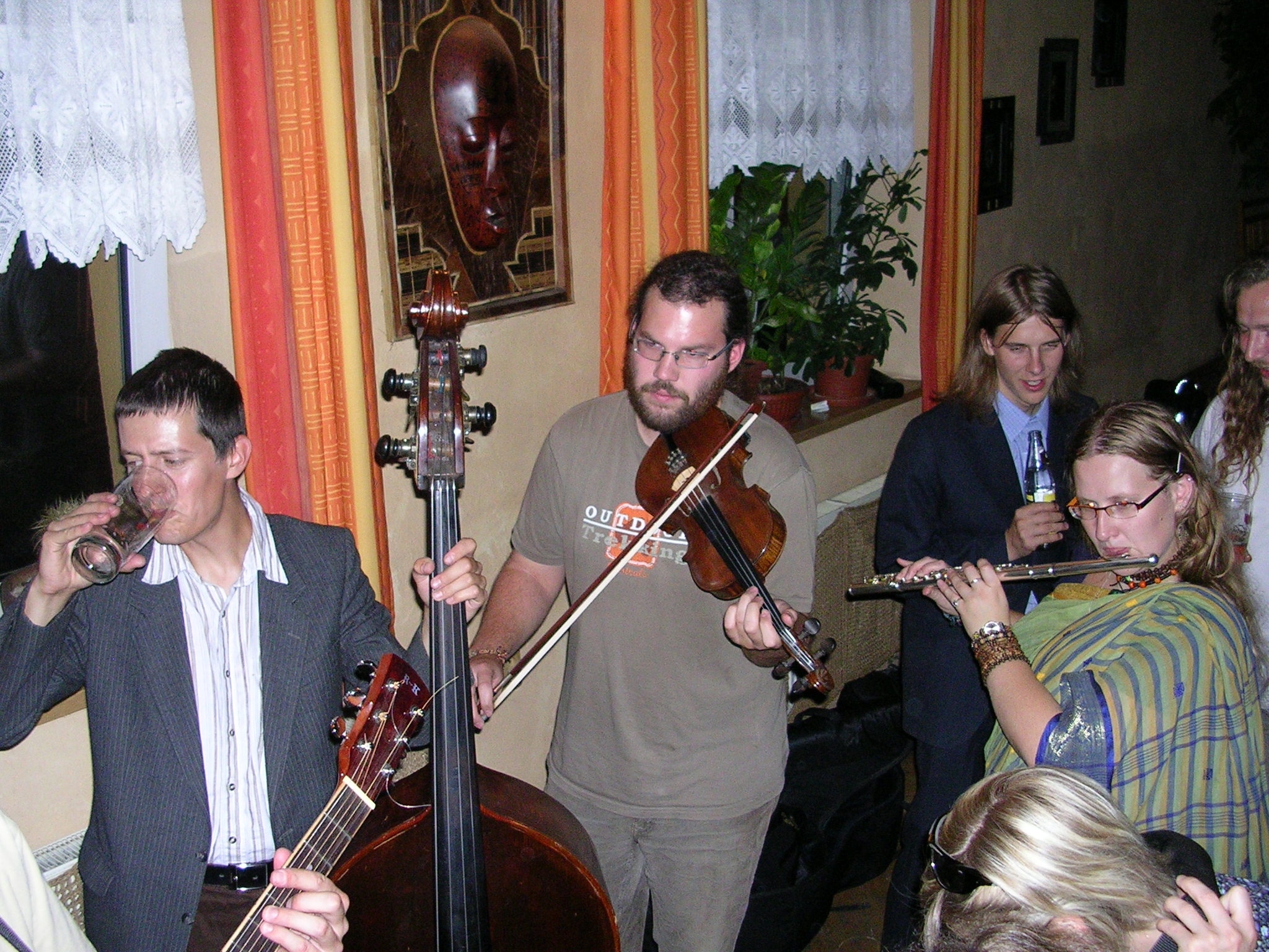 Jak čas běžel a na zahrádce začínala být zima, všichni se postupně začali přesouvat dovnitř. Diskotéku 80tých let jsme si zpestřili neutrální univerzální muzikou vlastní výroby, děkuji za organizaci a obdivuji logistické zvládnutí přesunů lidí, zavazadel a kol. BUS směr Krkonoše odjel okolo půlnoci a parket byl celý 20ky a Apačů…až do druhé hodiny ranní. Ještě jsem zaslechla něco o tom, jak jste vlezli hospodě do kuchyně a zabalili si sami koláčkovou a masovou výslužku. Asi to mělo být na tu Satalickou afterparty, kde jste spokojeně usnuli :-). Že nám udělali dobrou šunku jsem se doslechla i od Řeháků rodičů.