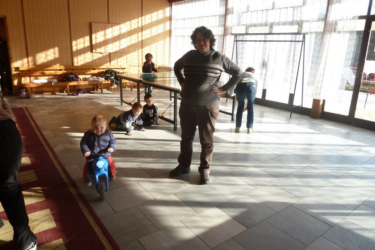 Jídelna, která byla pro celý víkend společenským centrem dění byla rozlehlá (včetně vstupní haly s pingpongovými stoly a hokejem) a tudíž se tam všechny, jak pobíhající, tak lezoucí děti hravě vešly.