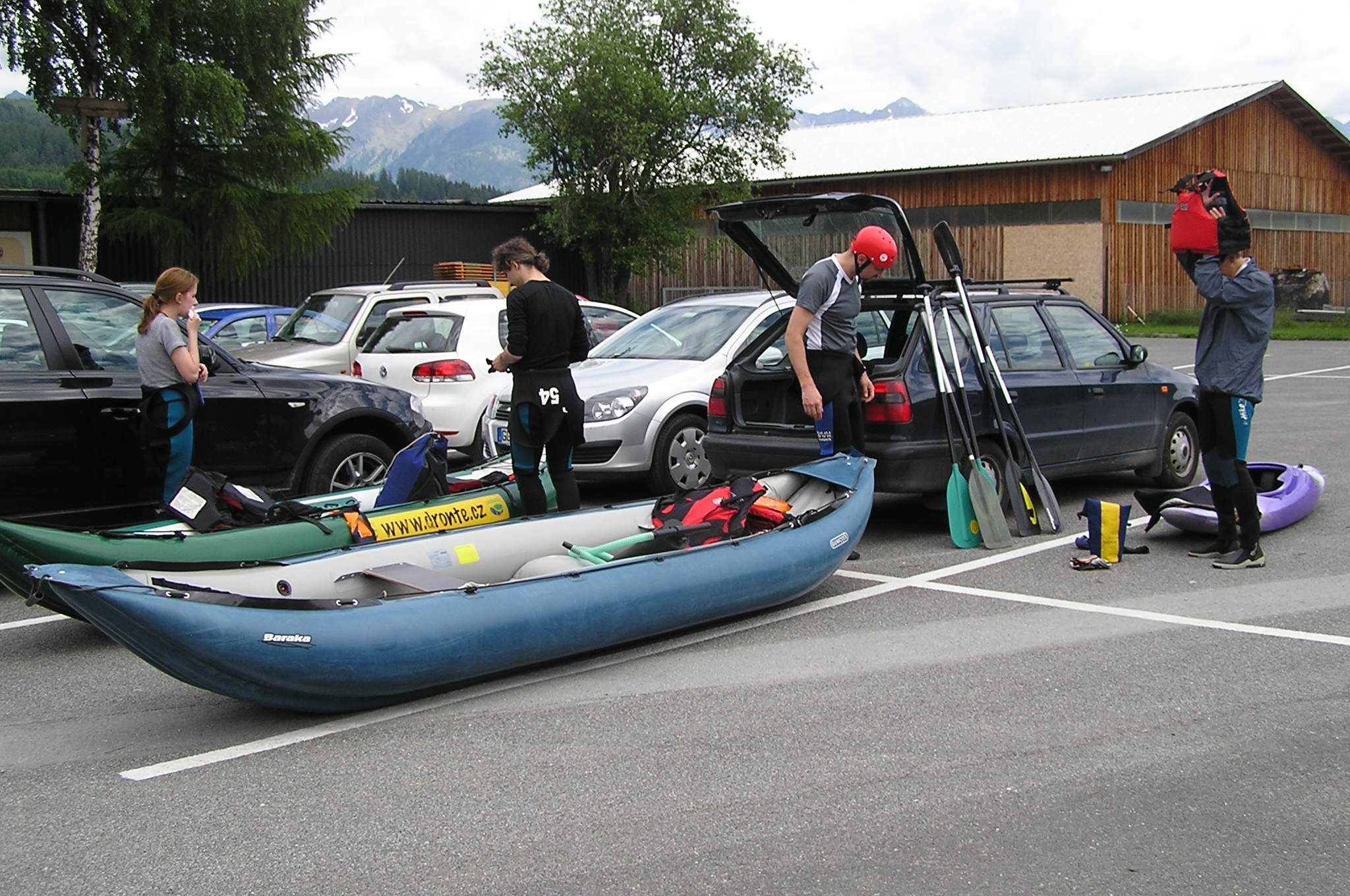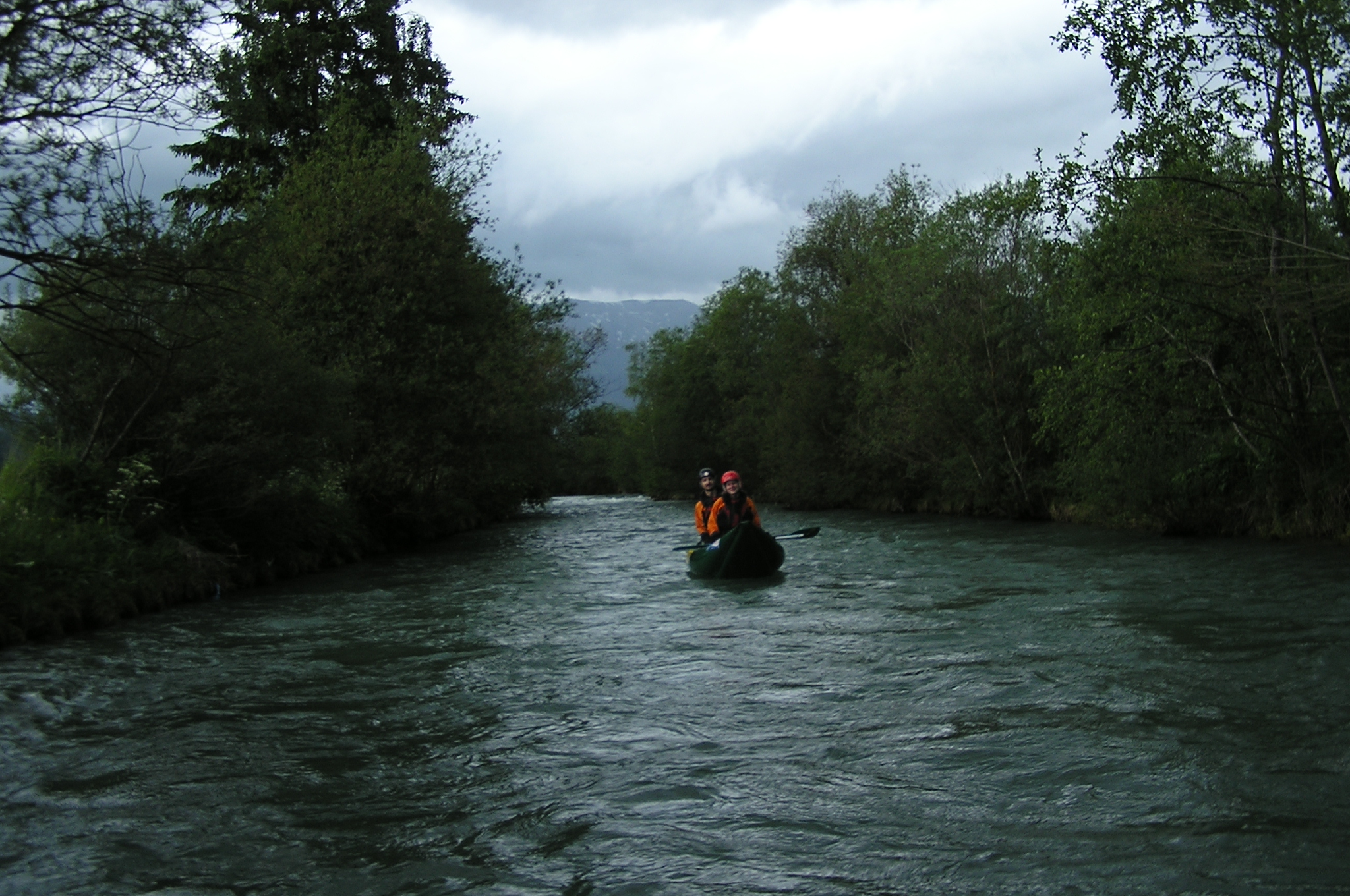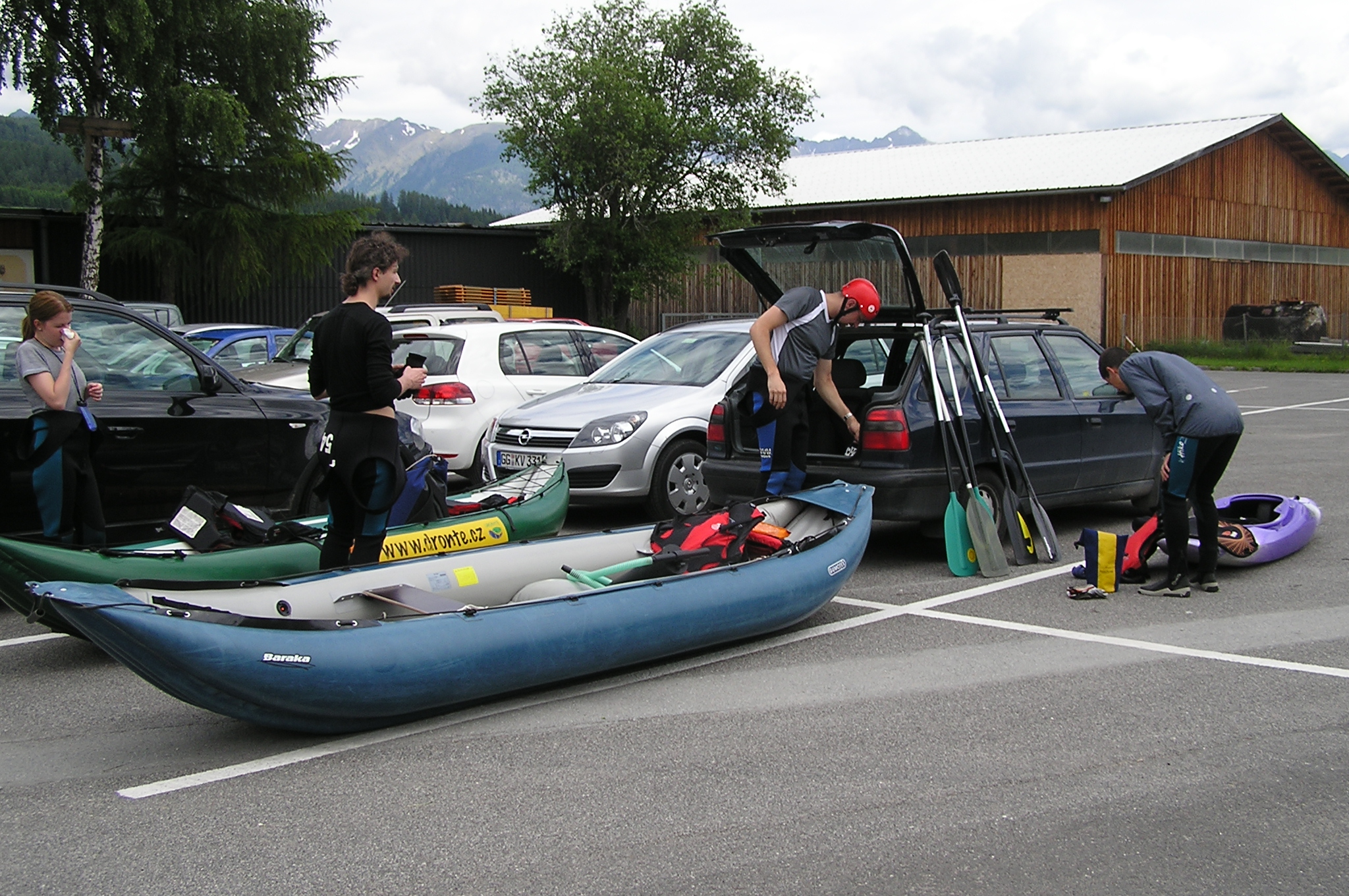 Letos Vašek přišel s neslýchaným nápadem – co kdybychom se vykašlali na osvědčené řeky a zkusili něco nového? A tak jsme si vzali dva dny dovolené a v komorní sestavě jsme se vydali hledat vodácké štěstí do (nám) neznámých terénů jižního Rakouska. Posádky: Vaškova sestřenice Markéta s přítelem Alanem a já s Míšou na nafukovacích kanoích, Vašek na svém kajaku. Výprava byla úspěšná: počasí nám přálo, objevili jsme čtyři zajímavé řeky, zaznamenané ztráty přijatelné – jeden foťák staršího data výroby.
