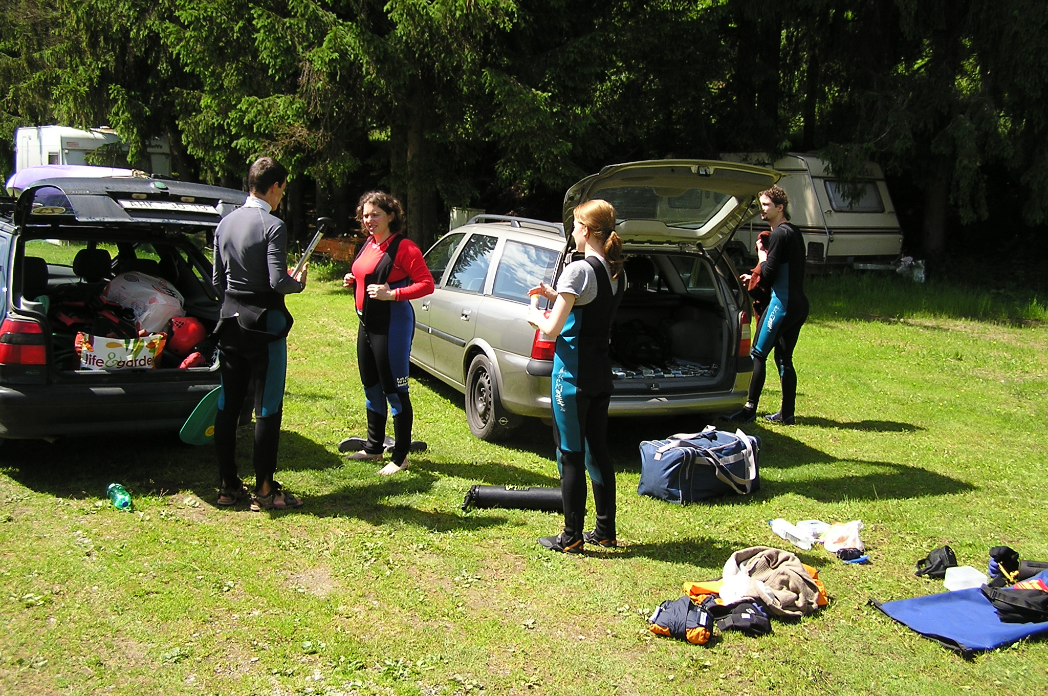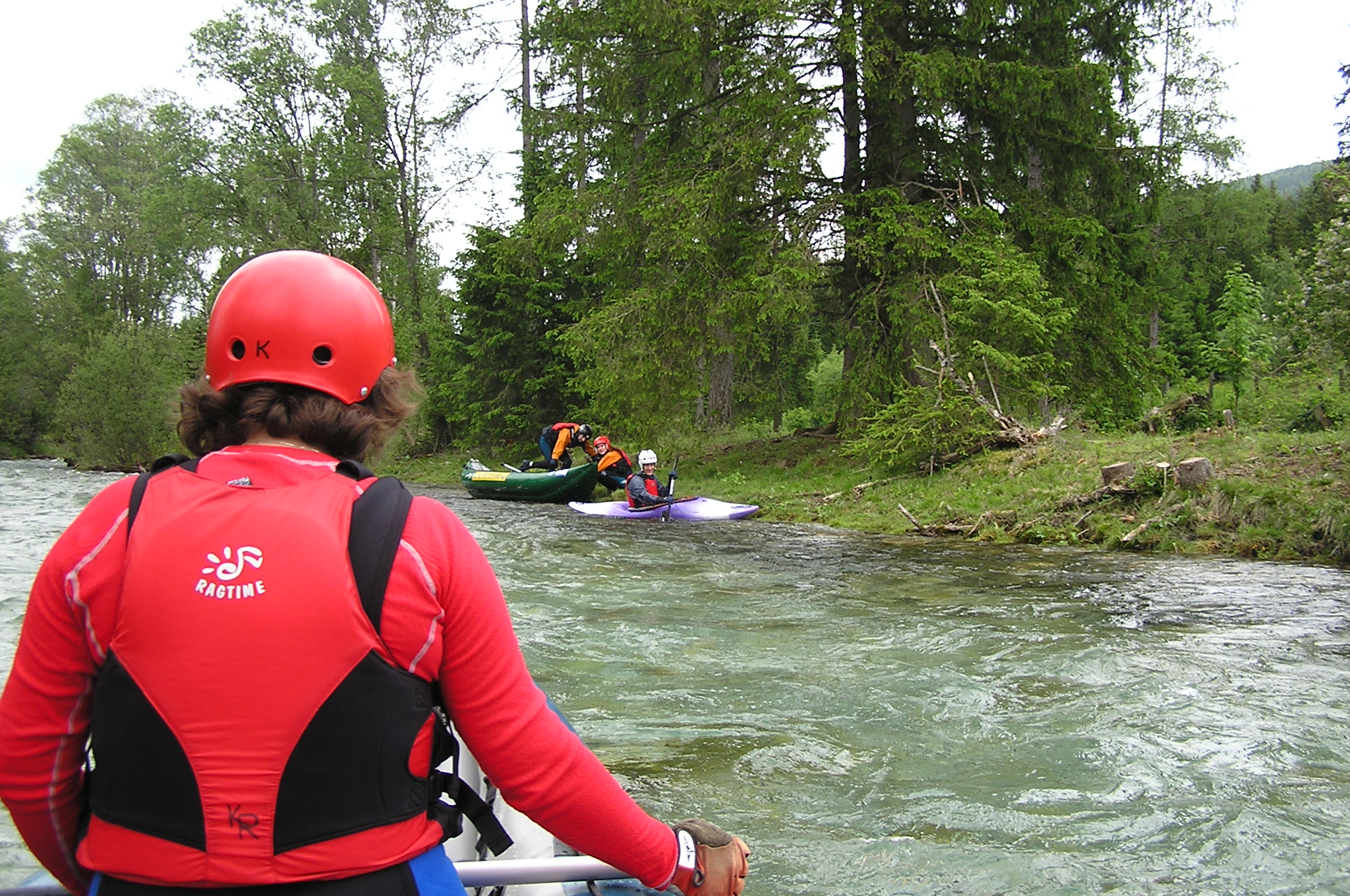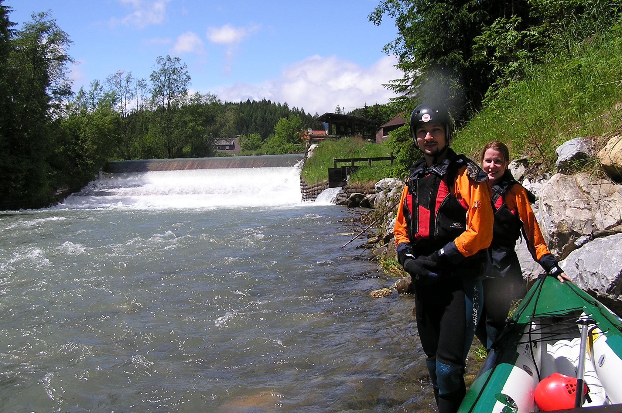 Letos Vašek přišel s neslýchaným nápadem – co kdybychom se vykašlali na osvědčené řeky a zkusili něco nového? A tak jsme si vzali dva dny dovolené a v komorní sestavě jsme se vydali hledat vodácké štěstí do (nám) neznámých terénů jižního Rakouska. Posádky: Vaškova sestřenice Markéta s přítelem Alanem a já s Míšou na nafukovacích kanoích, Vašek na svém kajaku. Výprava byla úspěšná: počasí nám přálo, objevili jsme čtyři zajímavé řeky, zaznamenané ztráty přijatelné – jeden foťák staršího data výroby.