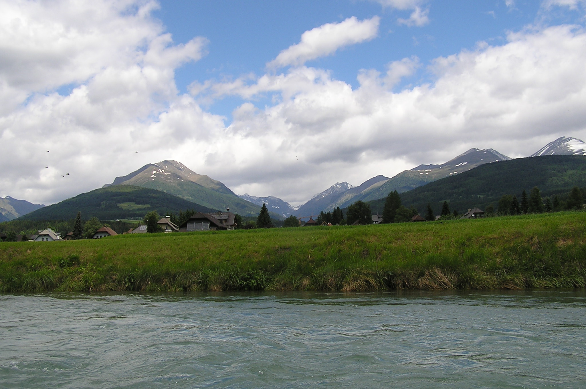 Vylodili jsme se ve vesnici Stadl (tuším) a pro velký úspěch jsme si zkrácenou plavbu dali ještě jednou. Ještě týž večer jsme se zabalili a atraktivní krajinou vyrazili k dalšímu cíli – do kempu v Obervellach na řece Moll. To už byl klasický vodácký kemp plný lidí a veselí, to vše ještě zesíleno faktem, že se na řece druhý den konaly závody ve sjezdu. Tábor jsme strategicky rozbili na posledním volném místě – u záchodů.